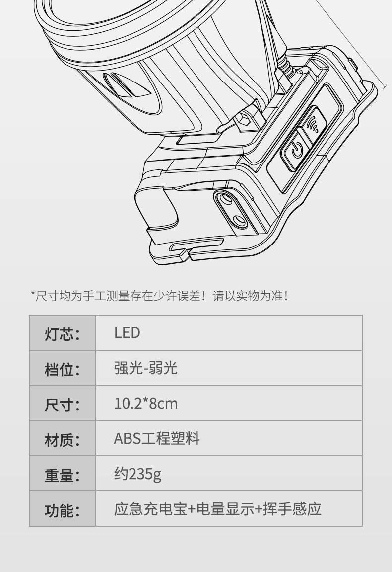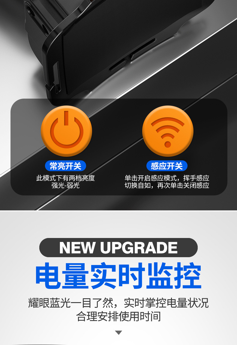 档位:按钮开关亮3档位强-弱-闪,感应