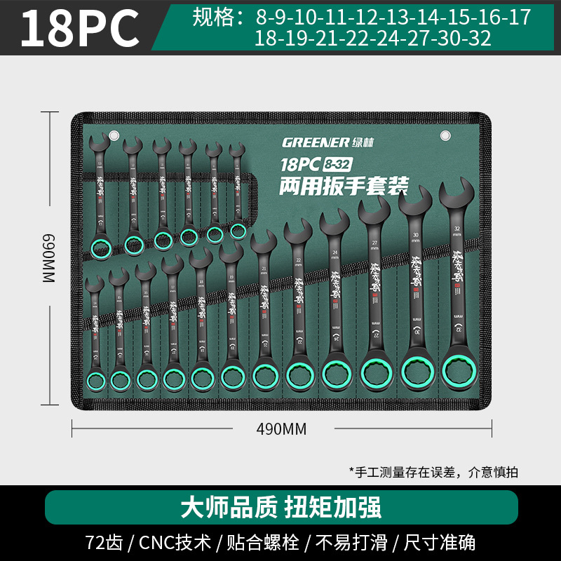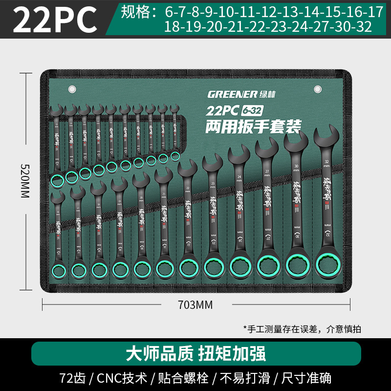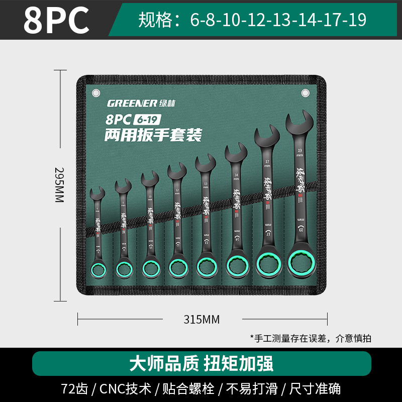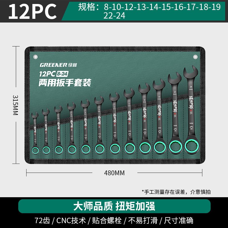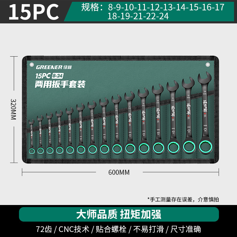 마스터 그린 포레스트 양방향 빠른 Torx 래칫 산업용 렌치 등급 자동 소형 오픈 엔드 이중 목적 렌치 도구 세트스토어 가기