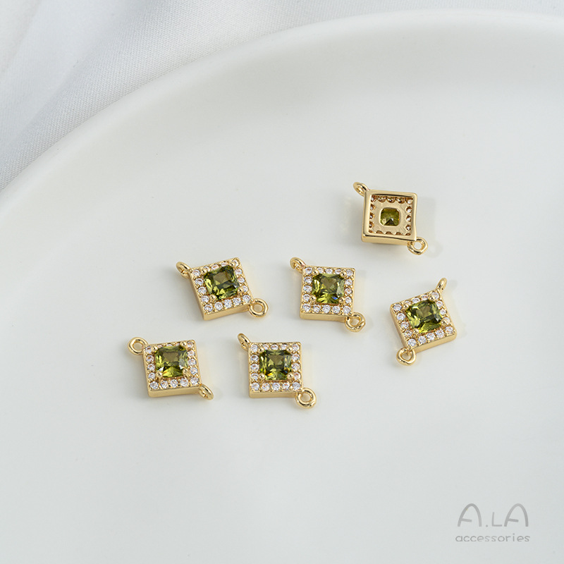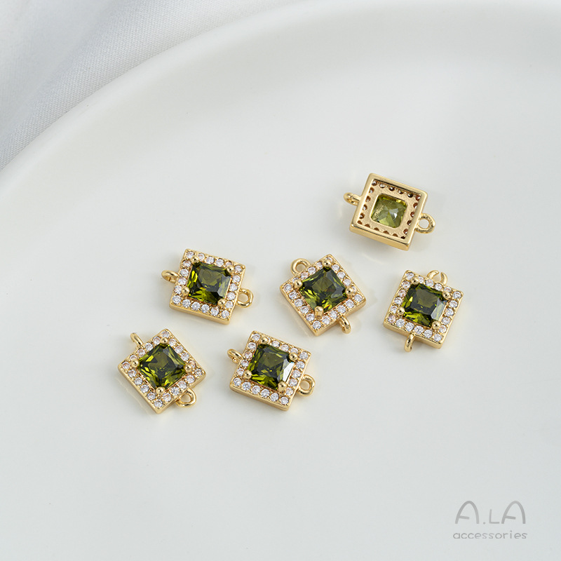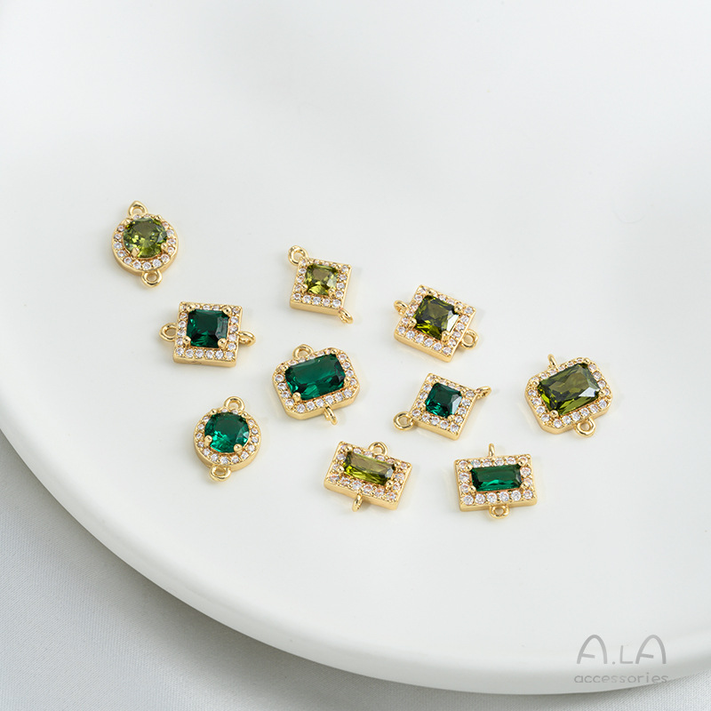 색상 보존 14K 골드 상감 에메랄드 올리브 그린 지르콘 기하학적 더블 링 DIY 손으로 만든 보석 액세서리스토어 가기