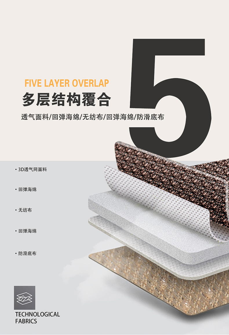 【产品特点】:透气面料/回弹海绵/无纺布/回弹海绵/防滑底布