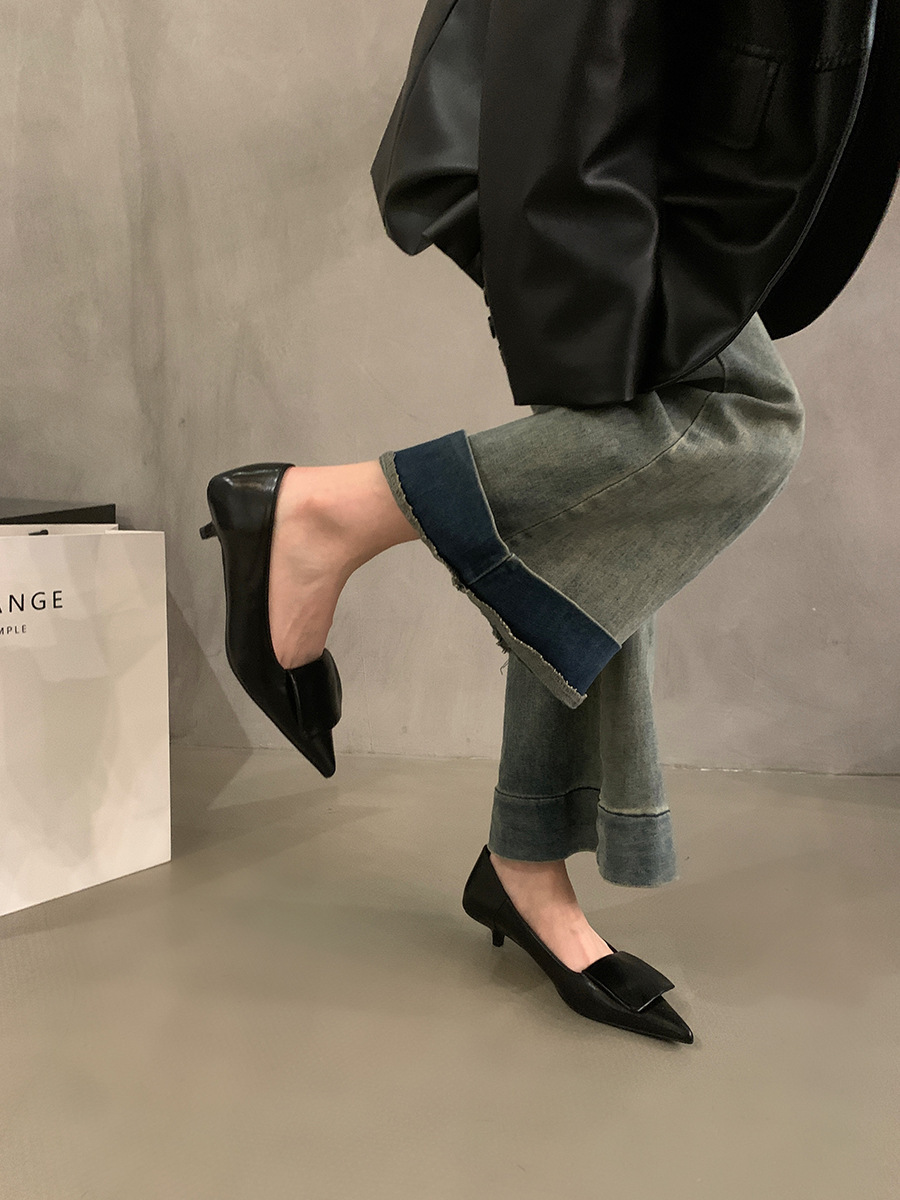 프랑스 새끼 고양이 다큐멘터리 신발 여성 신발 2024 새로운 높은 감각을 가리키는 우아한 간단한 검은 밤 바람 보트 신발스토어 가기