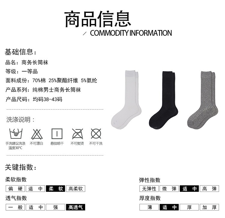 남성용 긴 비즈니스 캐주얼 양말 얇은 순수한면 통기성 스포츠 양말 남성용 수분 흡수 간단한 높은 흰색 양말 제어스토어 가기