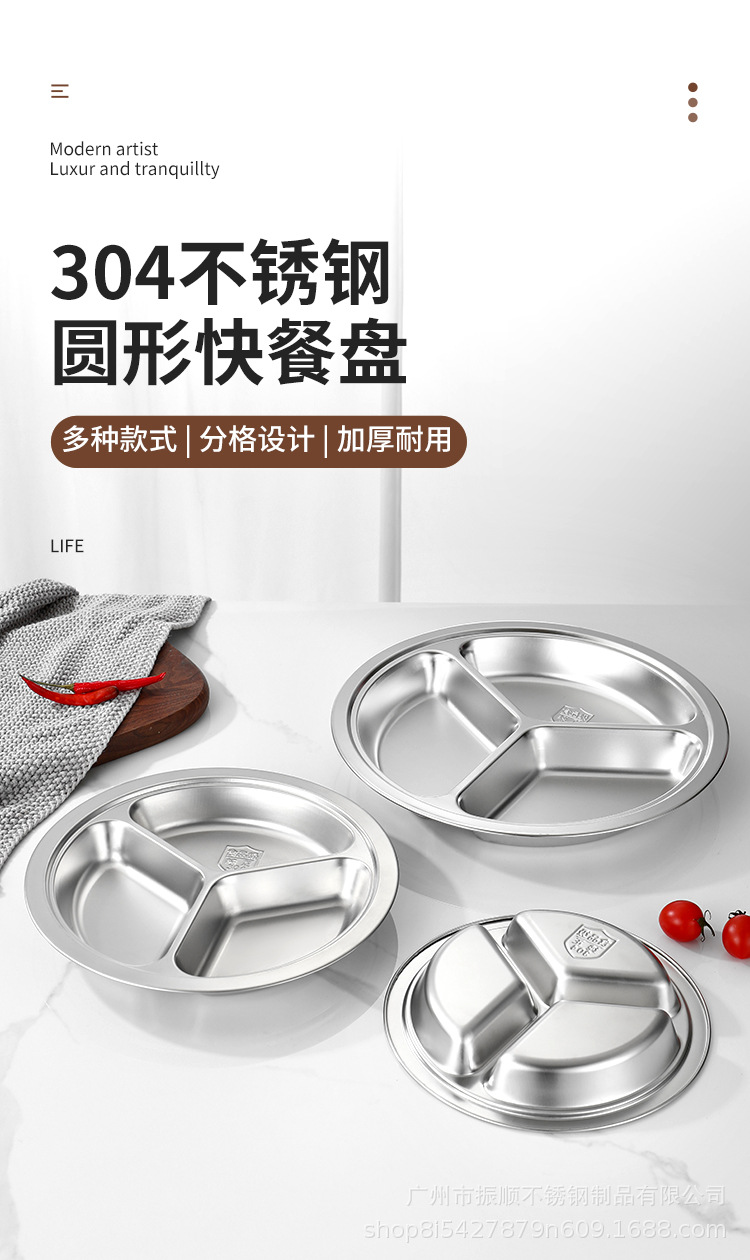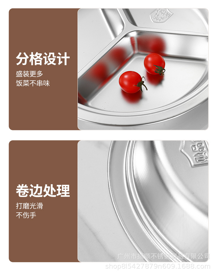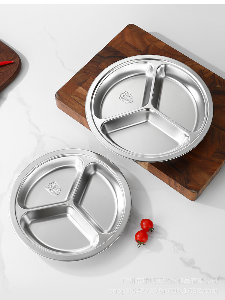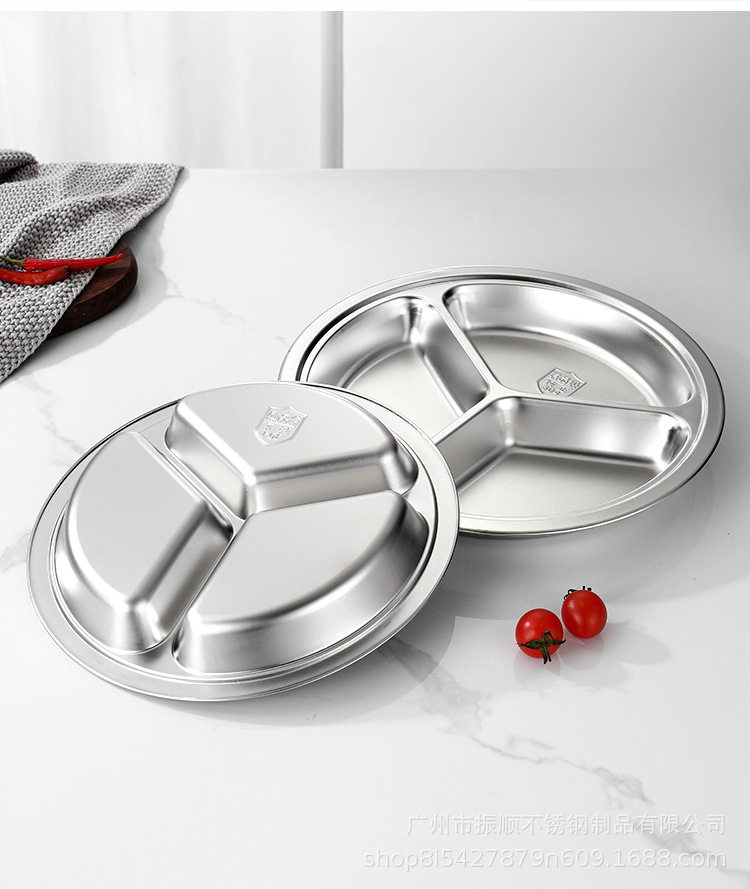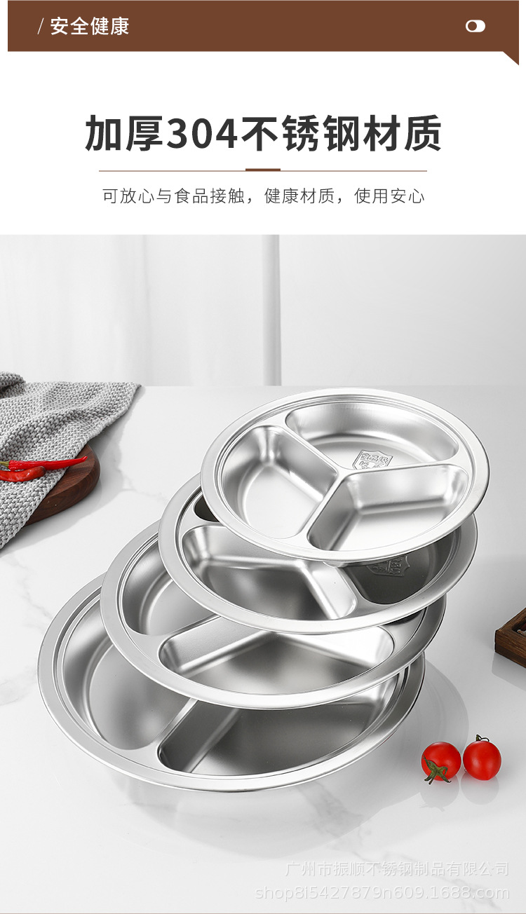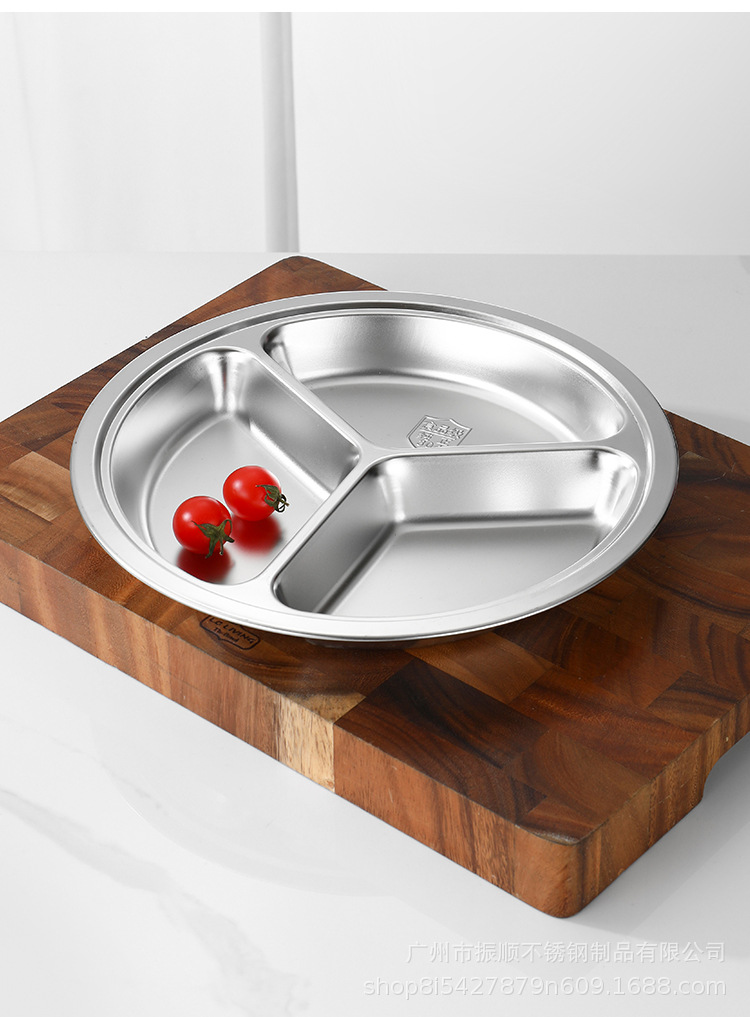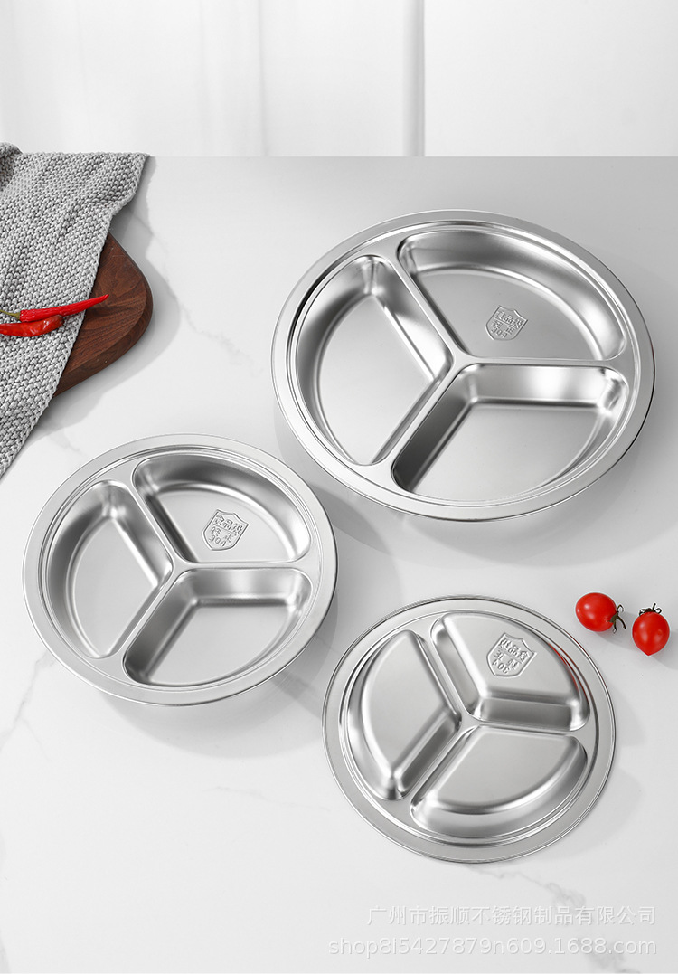 무료 배송 304 스테인레스 스틸 라운드 디너 플레이트, 패스트 푸드 플레이트, 학교 유치원 디너 플레이트, 3칸 어린이 디너 플레이트스토어 가기