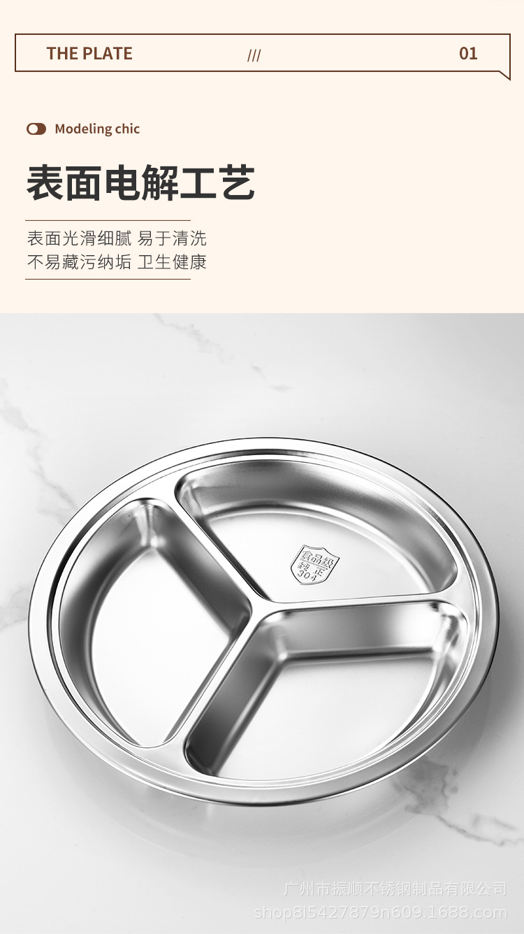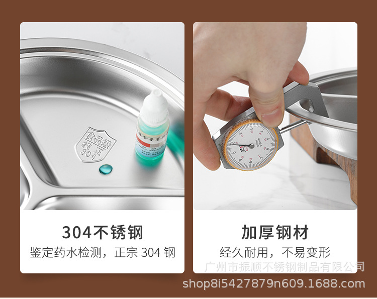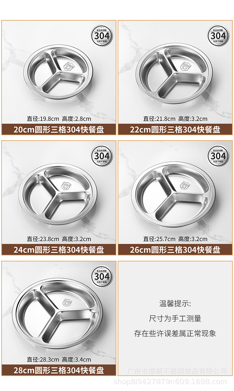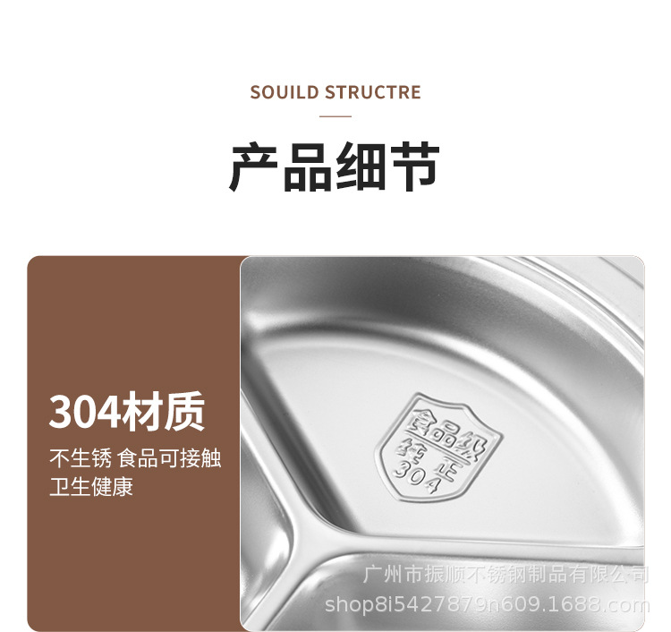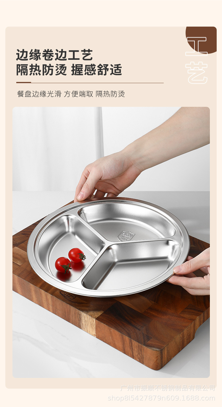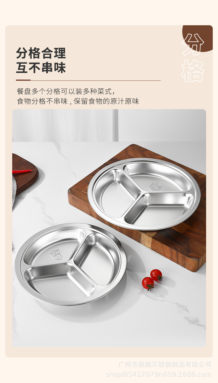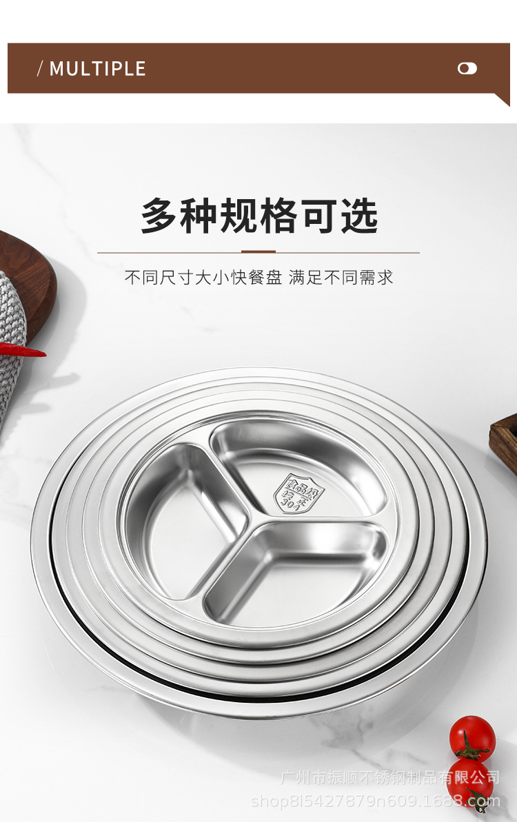 무료 배송 304 스테인레스 스틸 라운드 디너 플레이트, 패스트 푸드 플레이트, 학교 유치원 디너 플레이트, 3칸 어린이 디너 플레이트스토어 가기