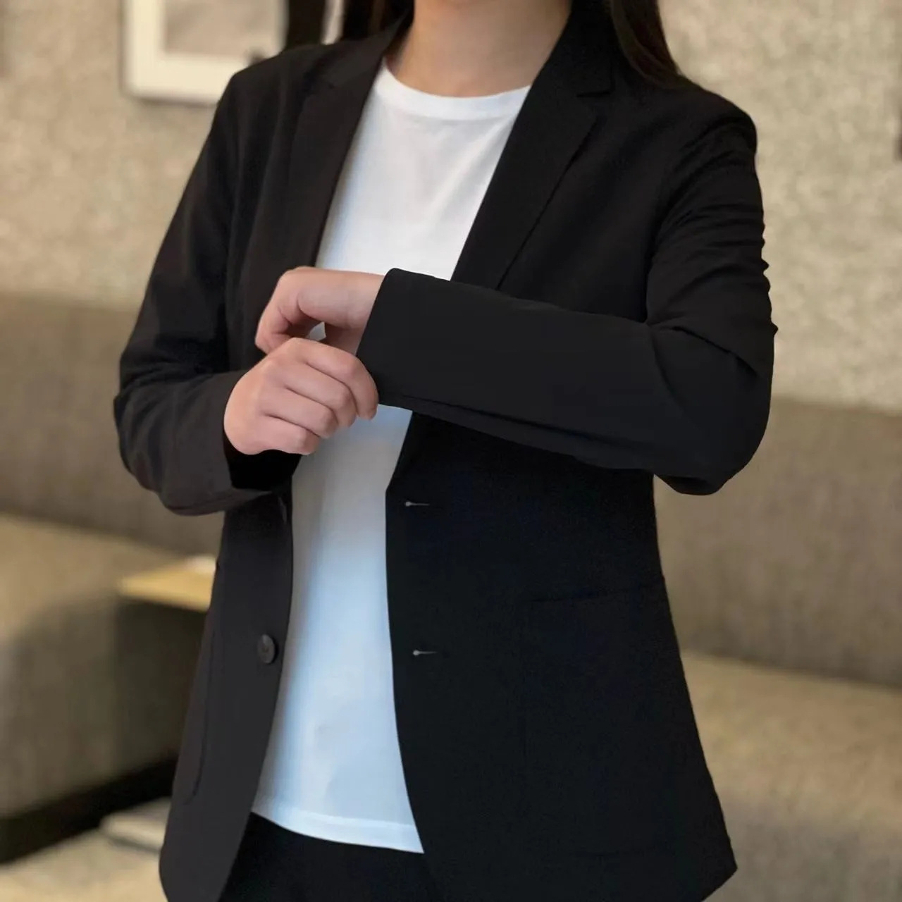 2023 가을 남자 클래식 간단한 세트 자켓 남성 비즈니스 캐주얼 작은 세트 간단한 솔리드 컬러 올 매치 싱글 웨스턴 스타일스토어 가기