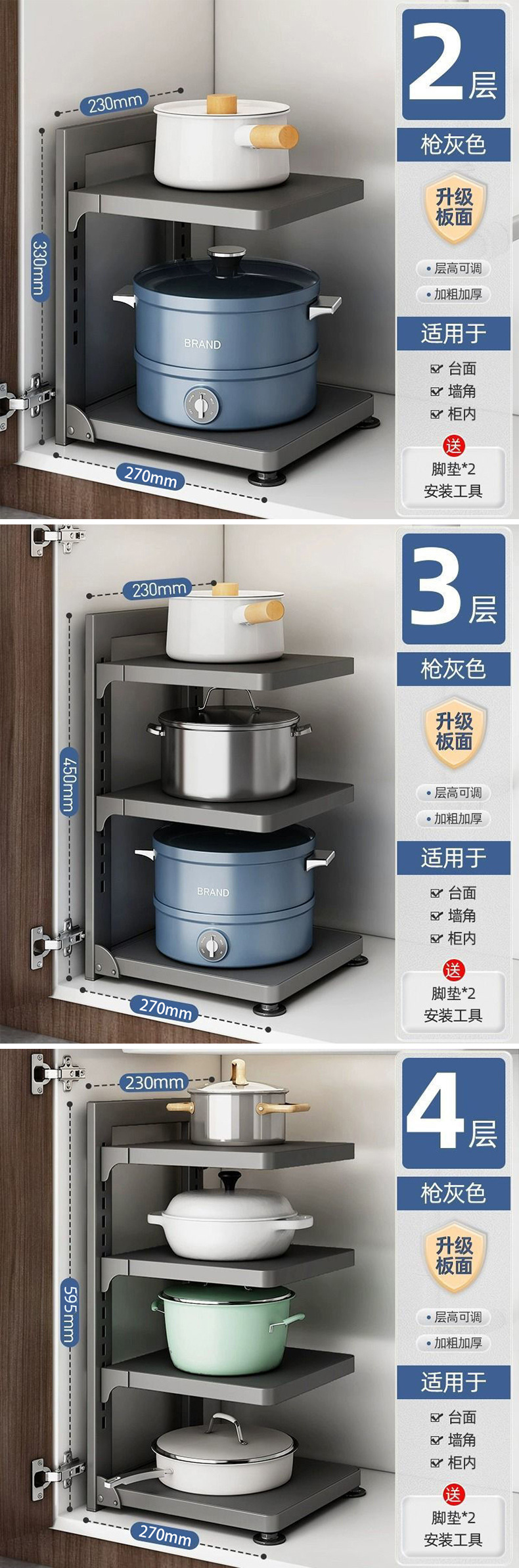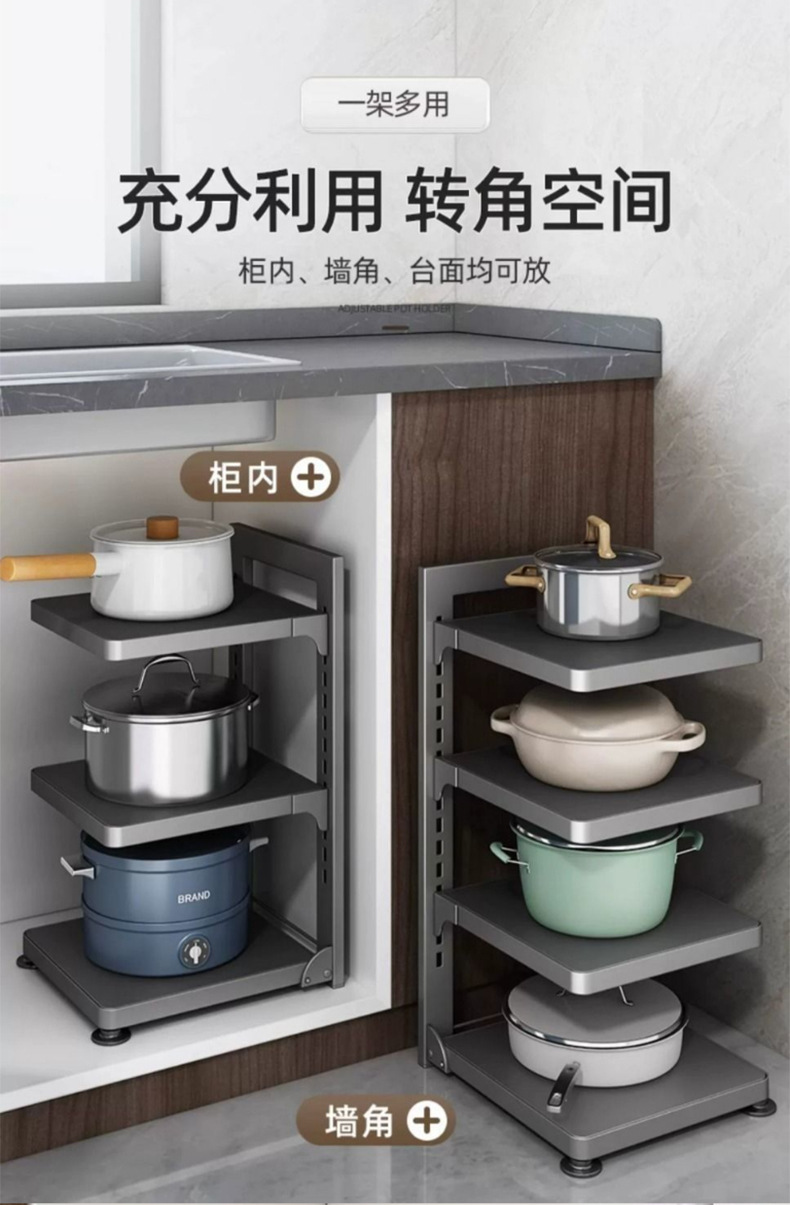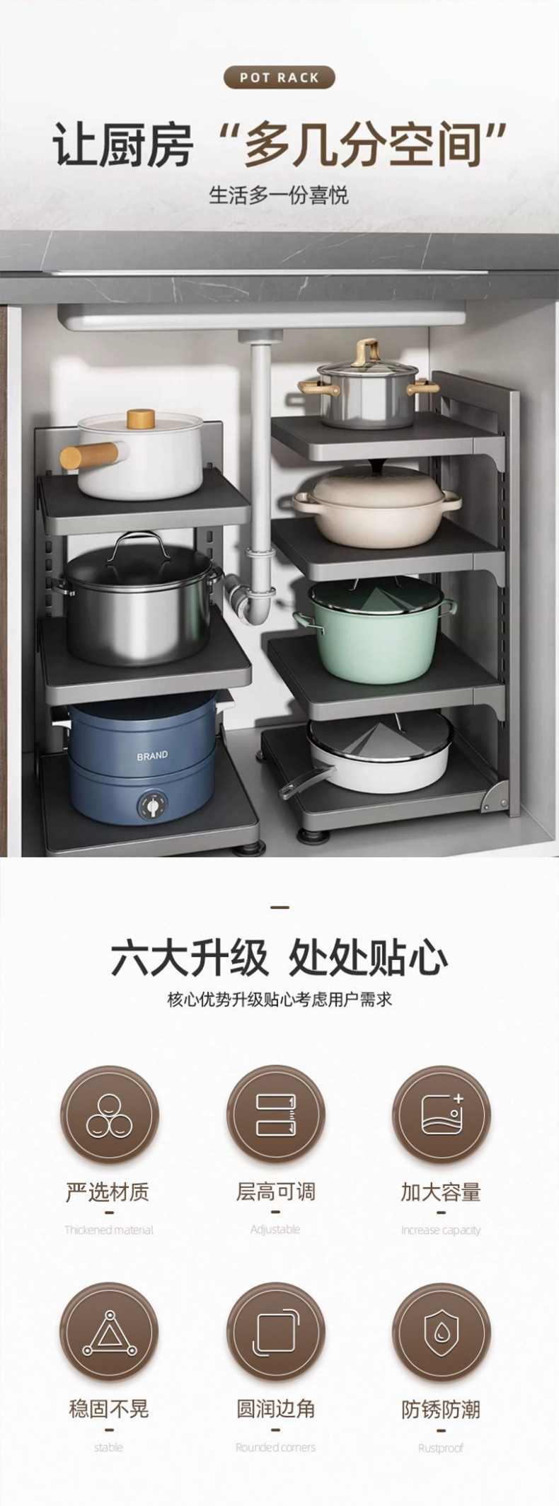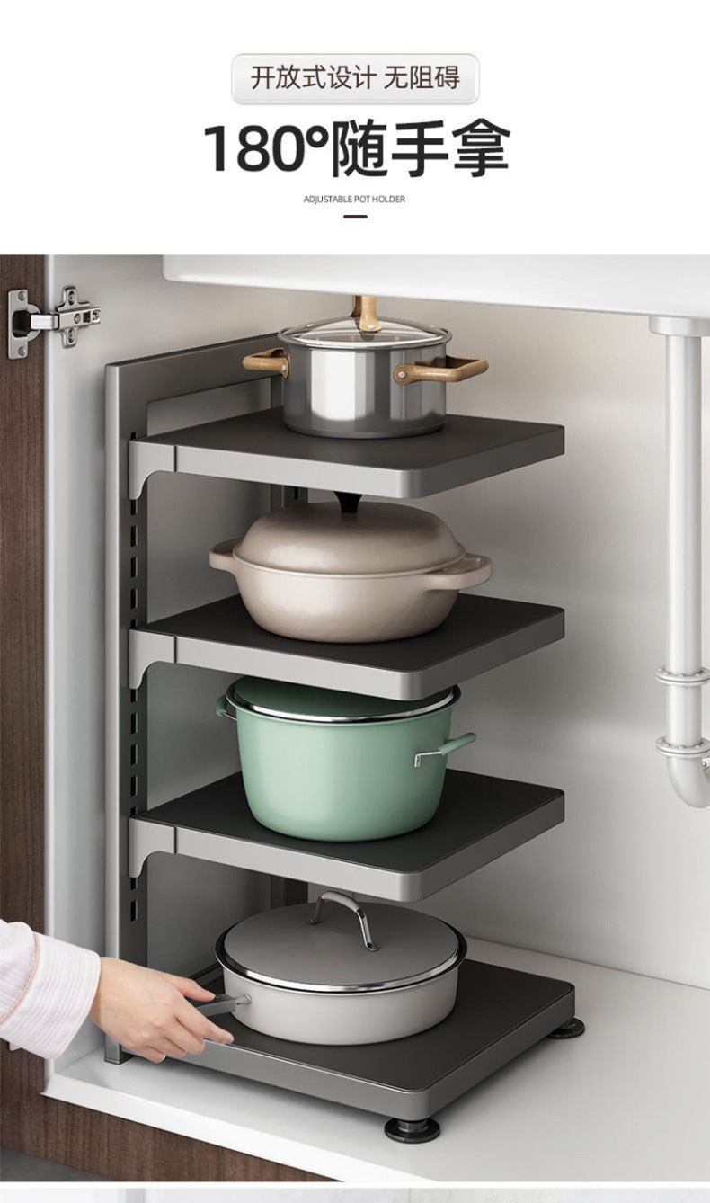싱크대 랙 아래의 주방 냄비 랙 가구 조정 가능한 다층 냄비 저장 랙 캐비닛 계층화 된 냄비 랙