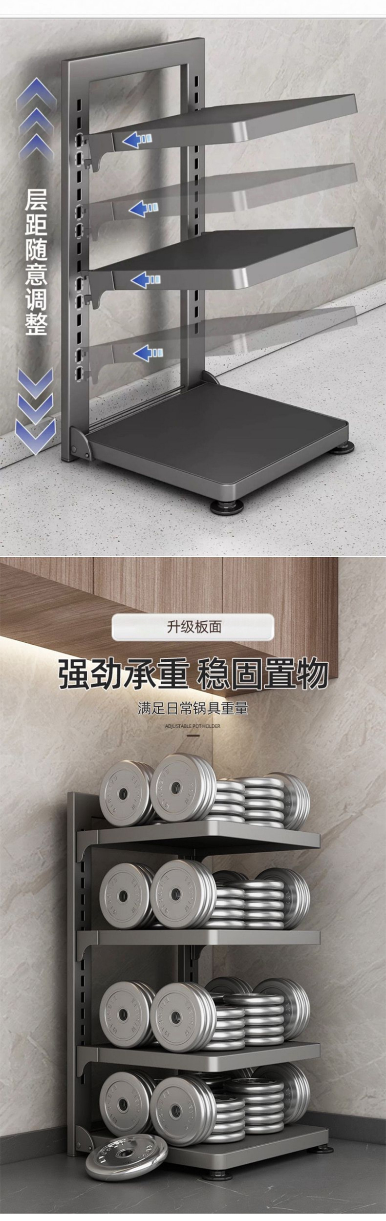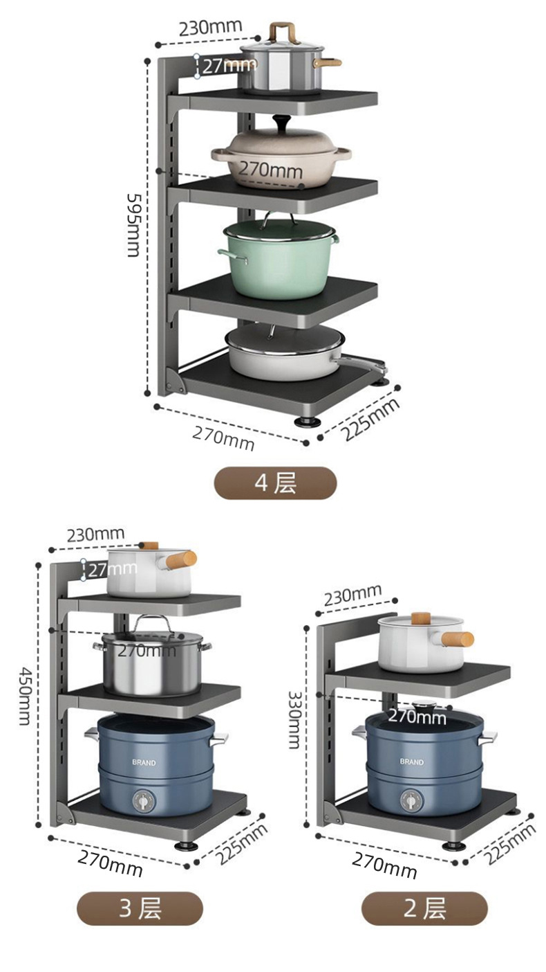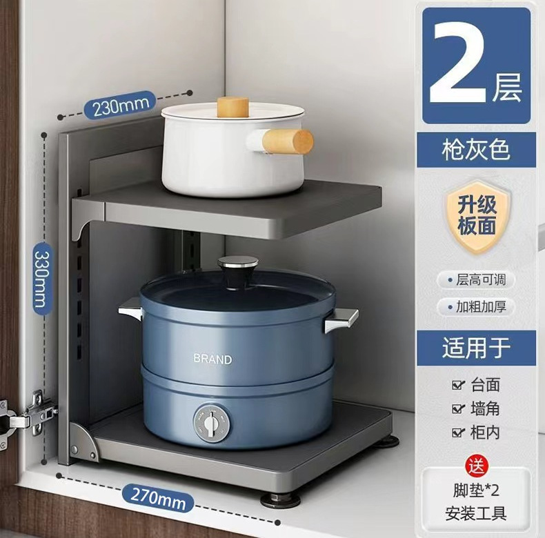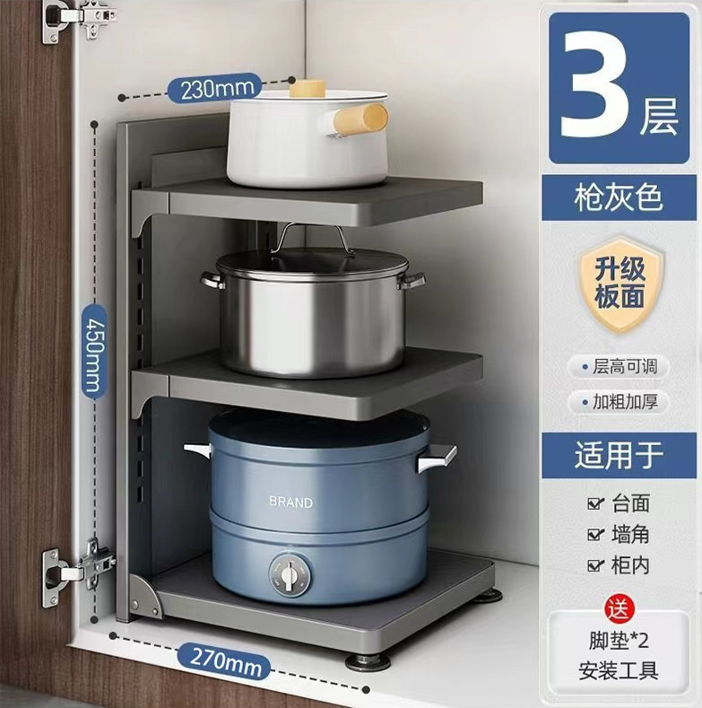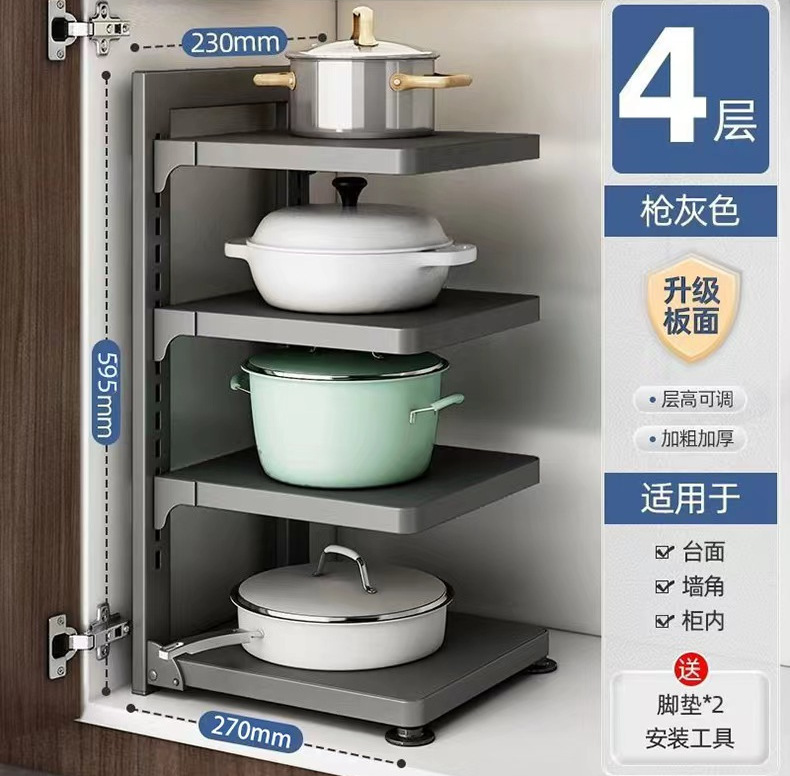 싱크대 랙 아래의 주방 냄비 랙 가구 조정 가능한 다층 냄비 저장 랙 캐비닛 계층화 된 냄비 랙