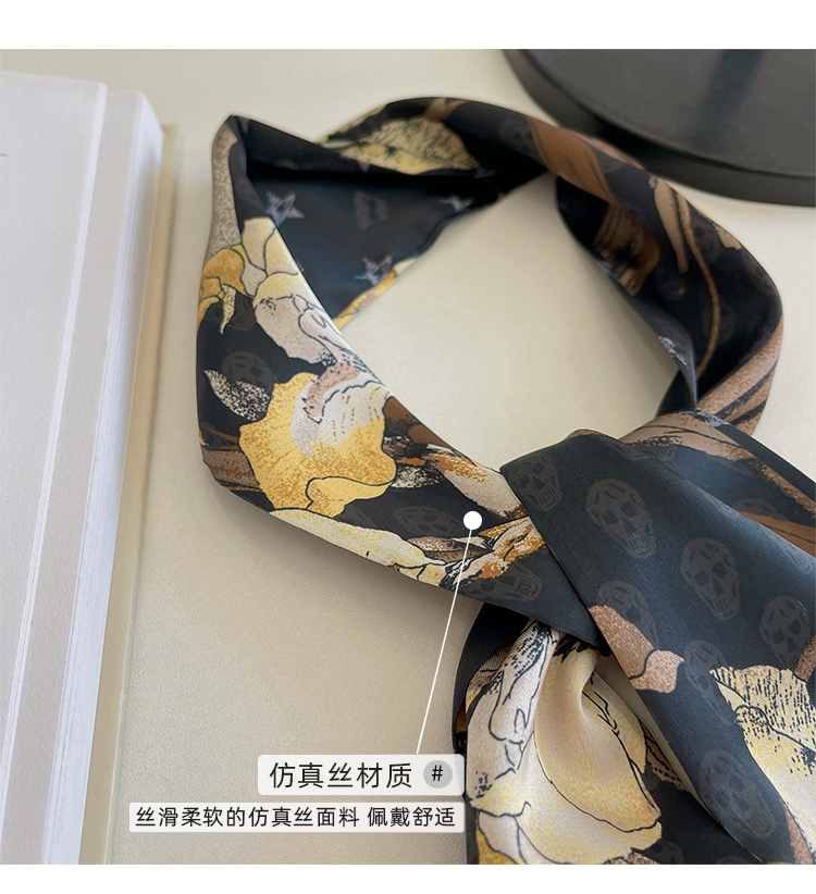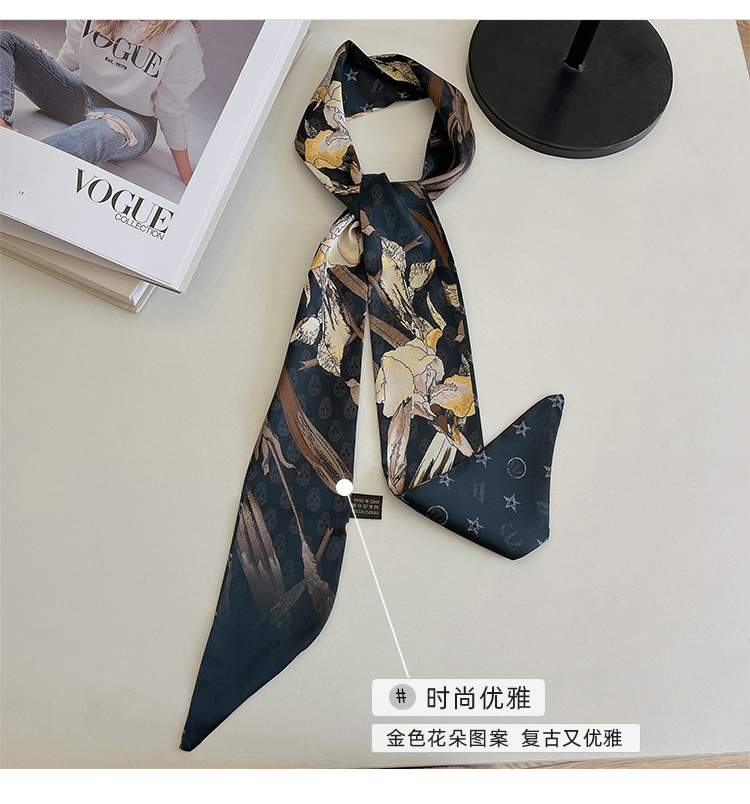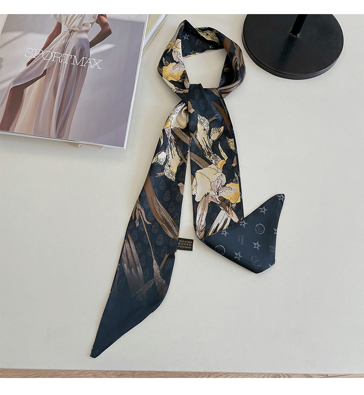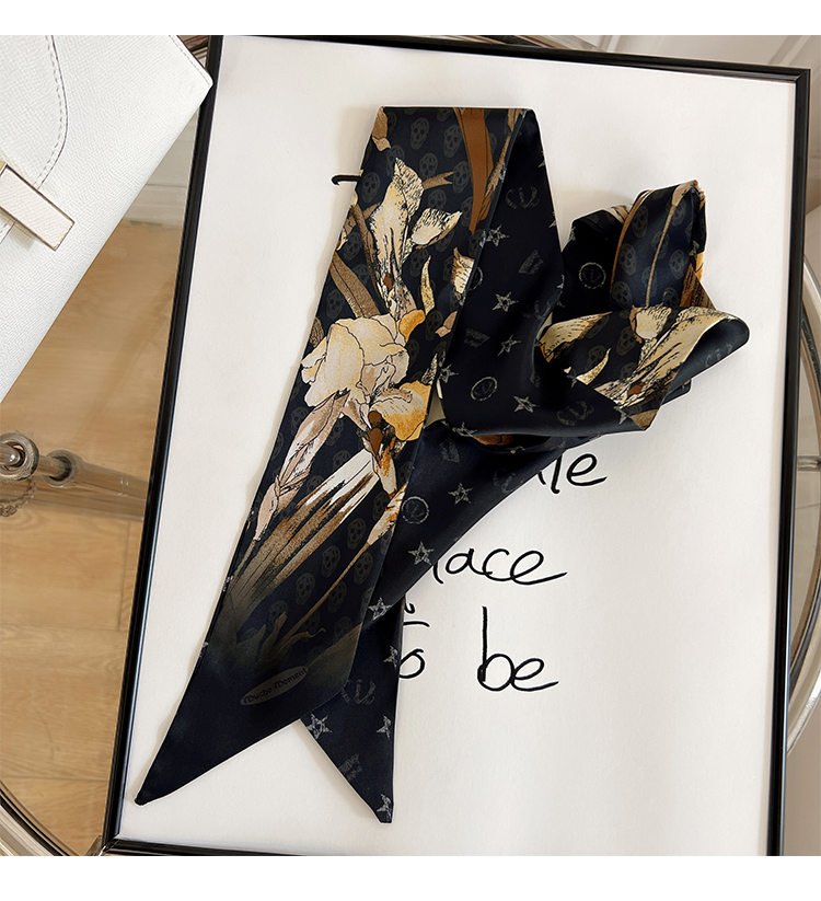원래 디자인 블랙 리본 틈새 유럽과 미국 스타일 양면 실크 스카프 다기능 봄과 가을 헤어 벨트 셔츠 스카프 여름스토어 가기