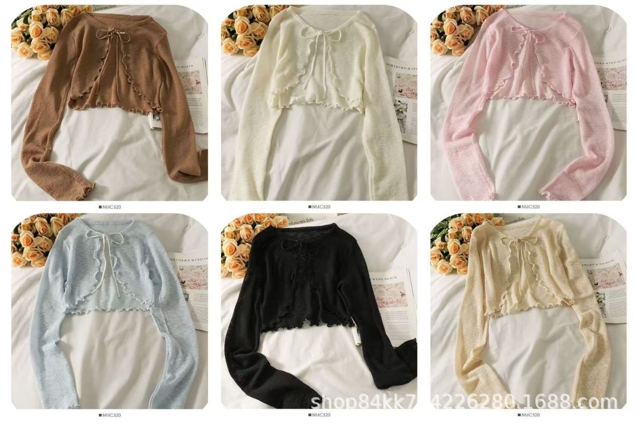 여름 소매 짧은 니트웨어 레이스 업 얇은 에어컨 선스크린 셔츠 작은 신선한 마카롱 컬러 카디건 폭발스토어 가기