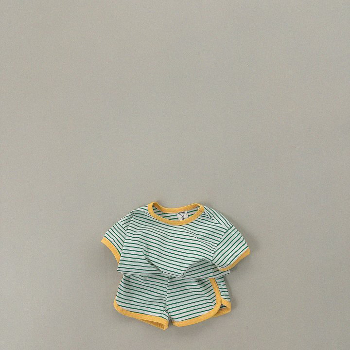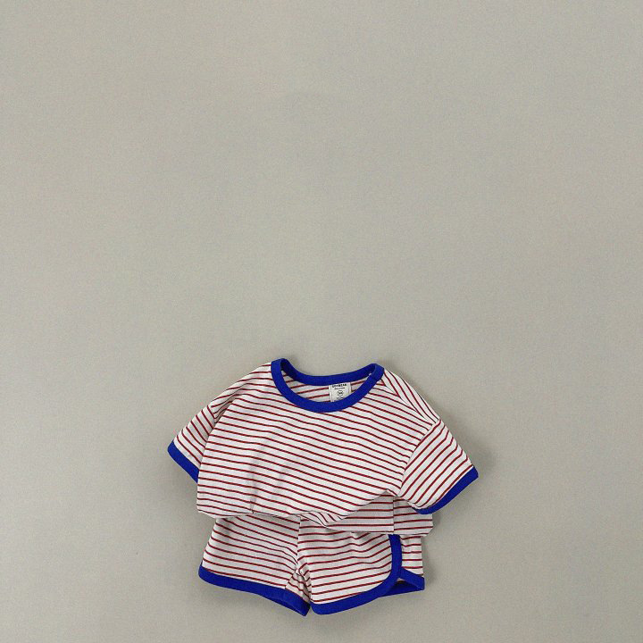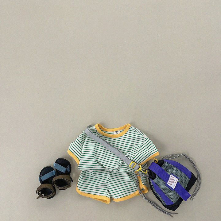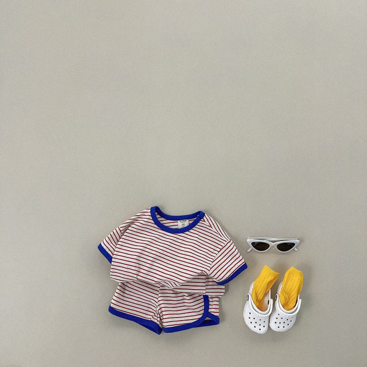 2024 년 여름 새로운 어린이 한국어 세트 귀여운 줄무늬 색상 매칭 얇은 여름 남학생과 여자를위한 투피스 세트스토어 가기