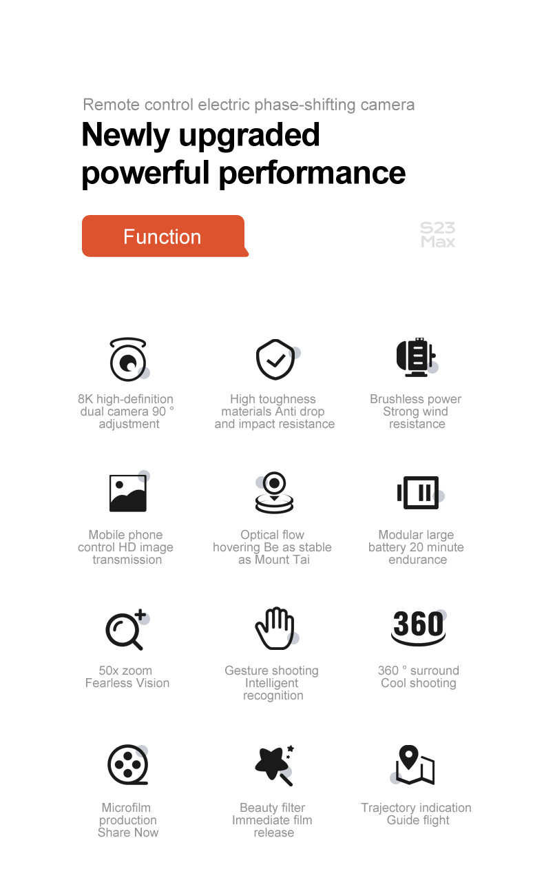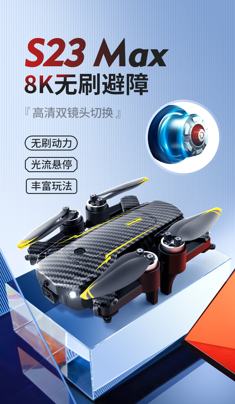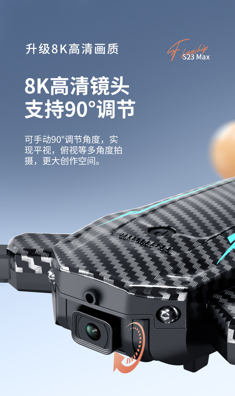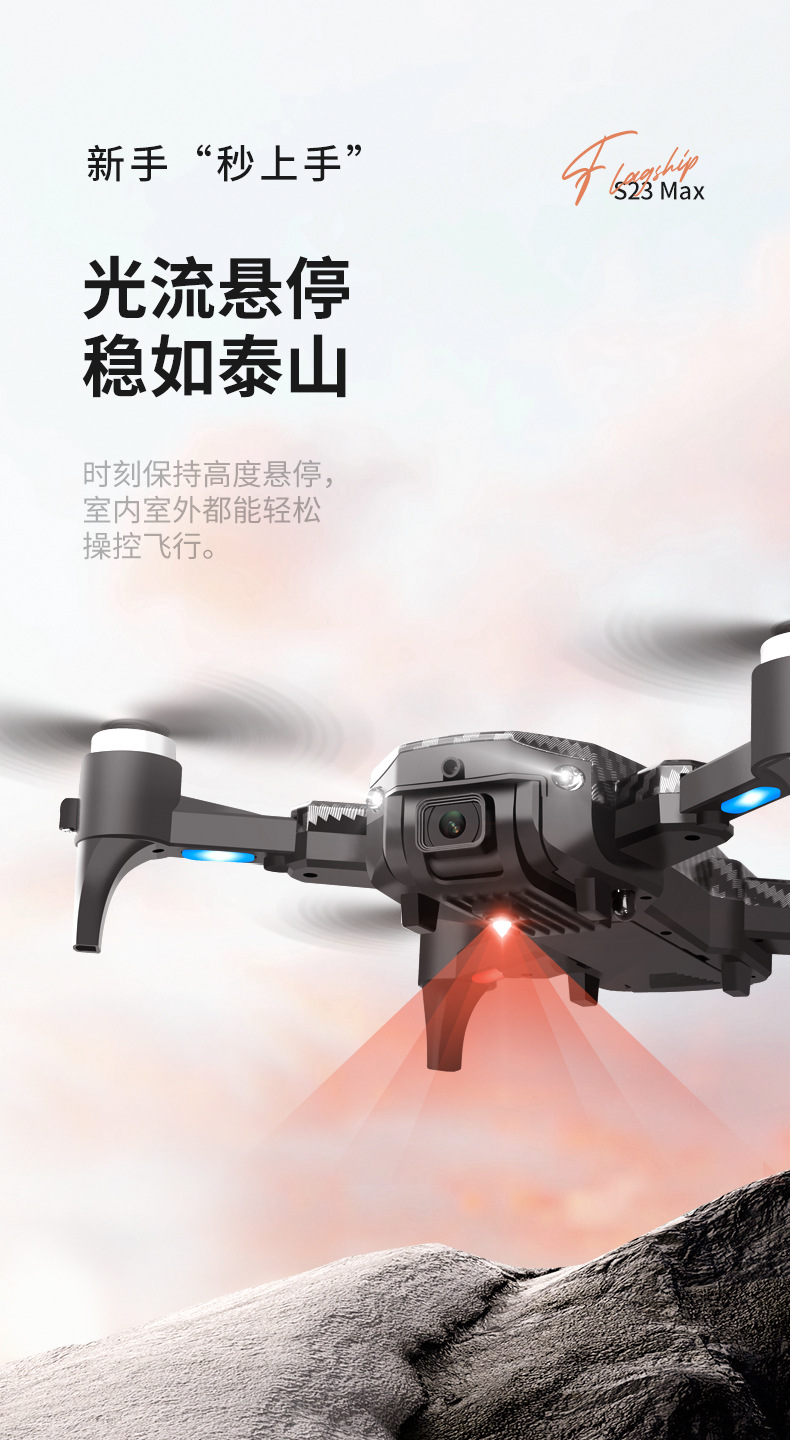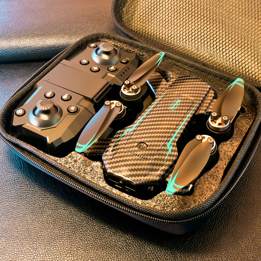 内置避障+光流定位 ,可电动调节镜头,智能跟随飞机可折叠,六通陀螺仪,一键起飞,一键降落,前进后退,左右侧飞,转向,无头模式,360°翻滚