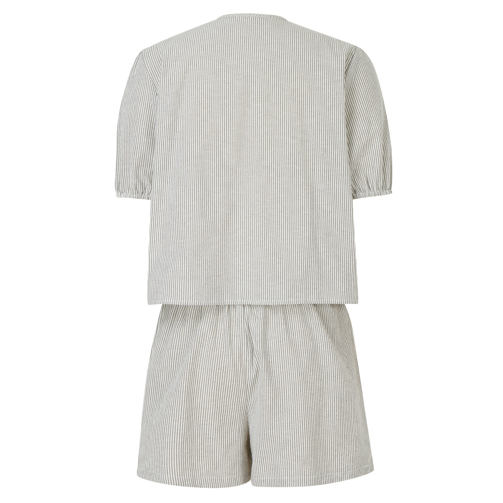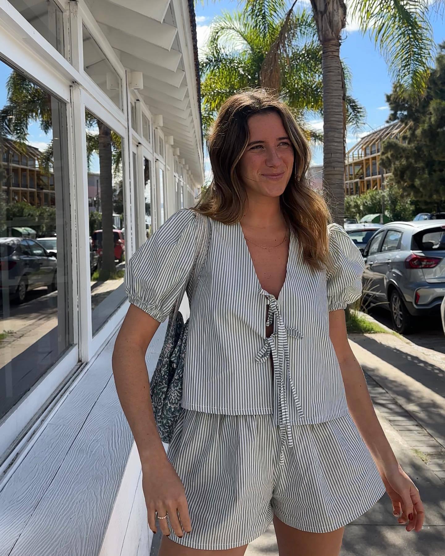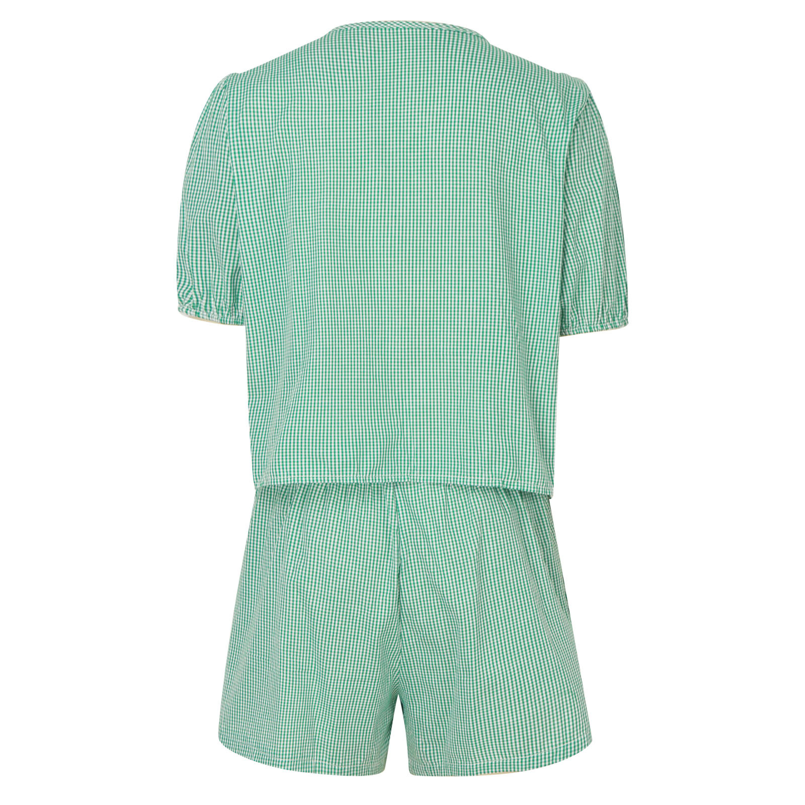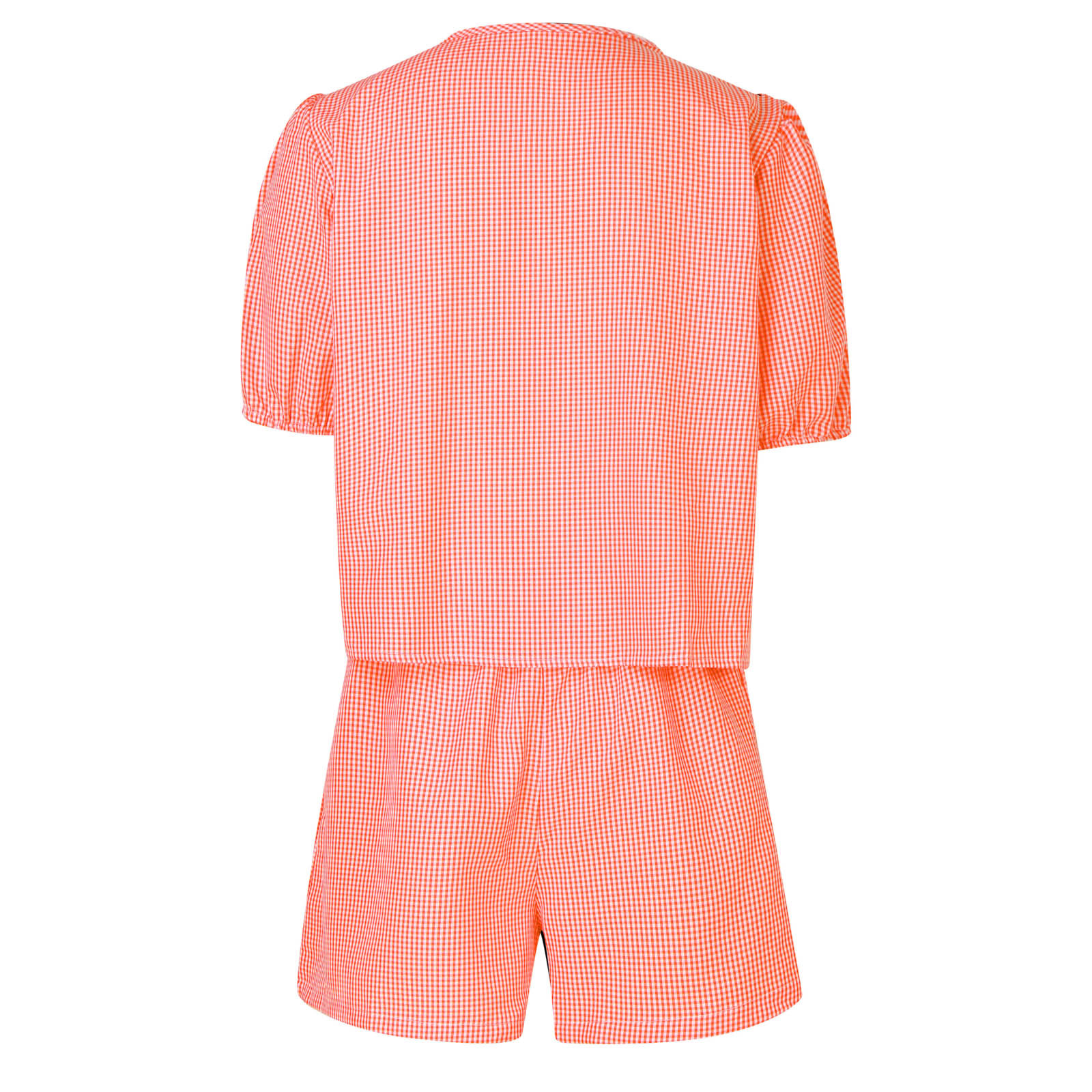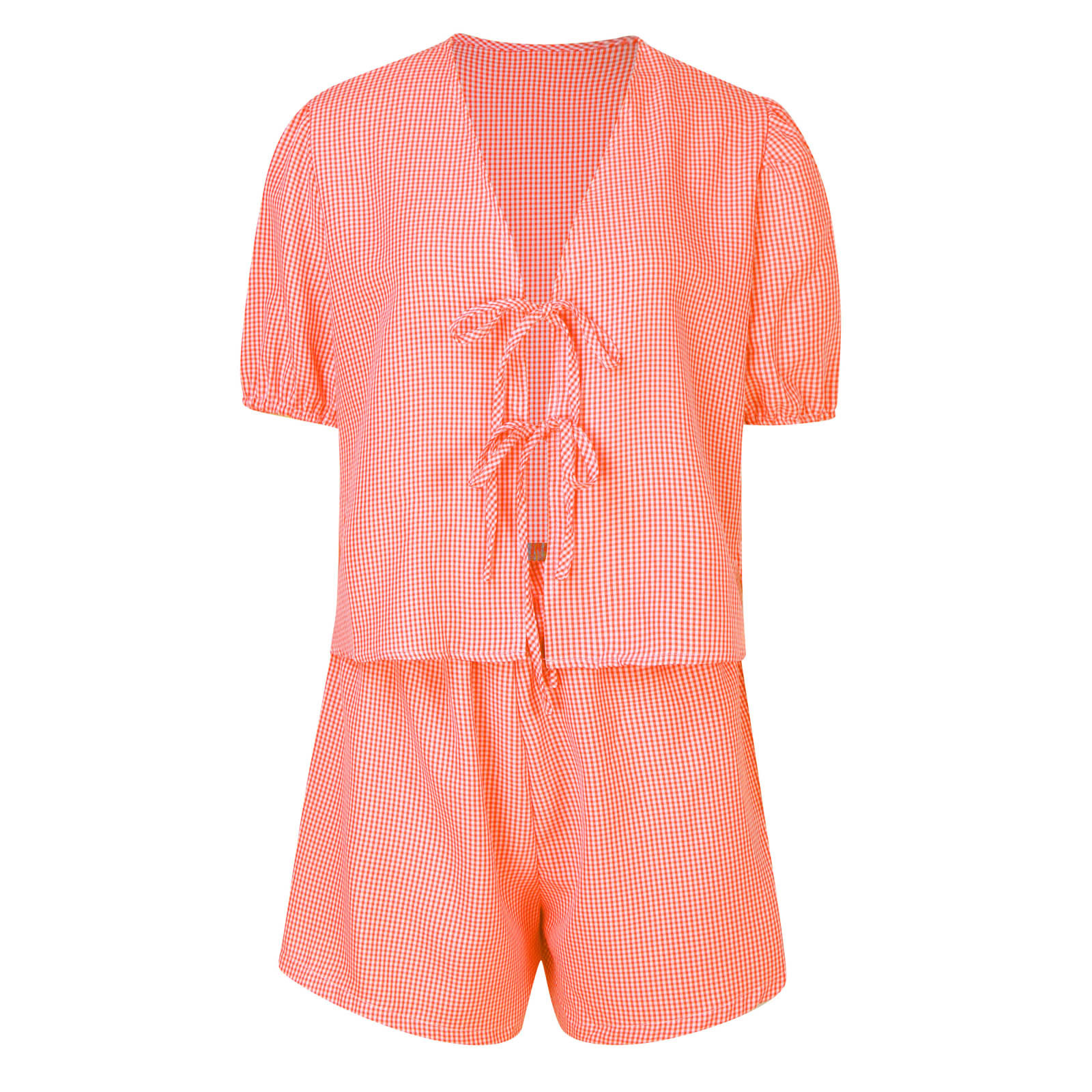 2024 새로운 유럽과 미국의 여성 격자 무늬 스트라이프 고무 커프 캐주얼 패션 테더 탄성 허리 반바지 세트