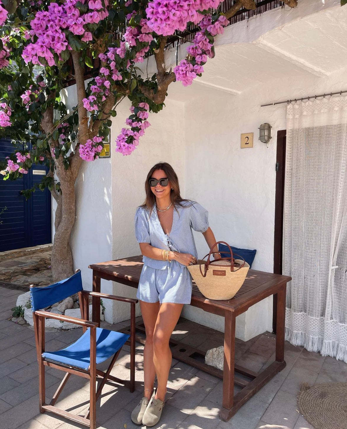 2024 새로운 유럽과 미국의 여성 격자 무늬 스트라이프 고무 커프 캐주얼 패션 테더 탄성 허리 반바지 세트스토어 가기