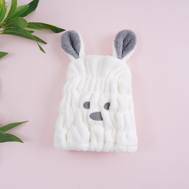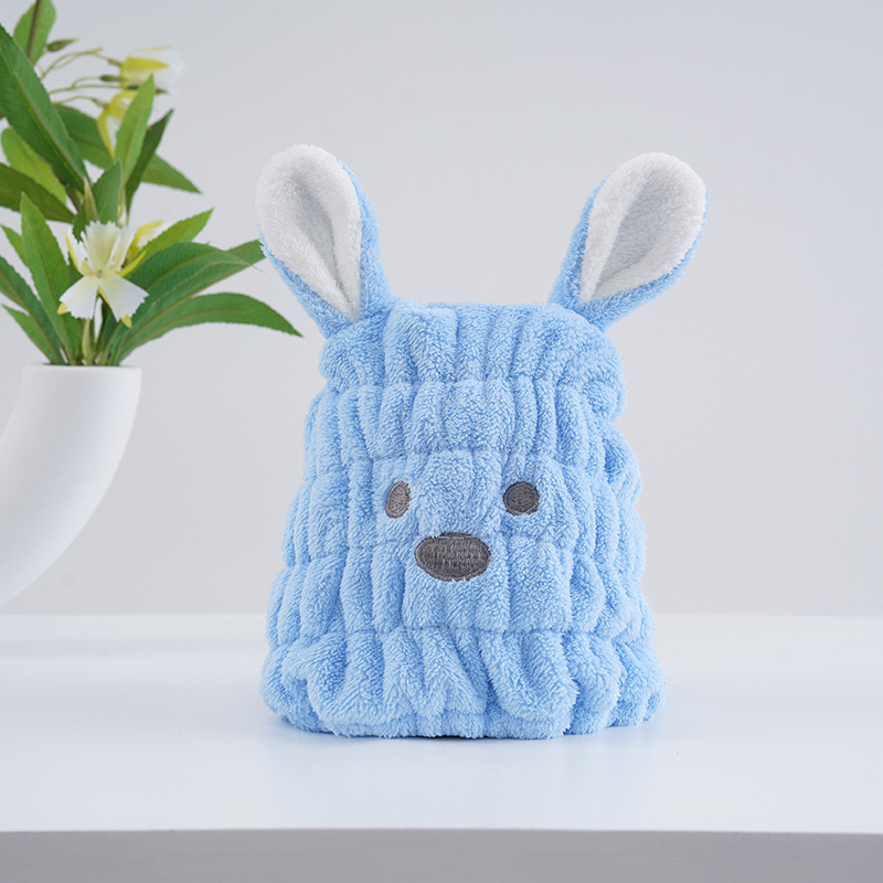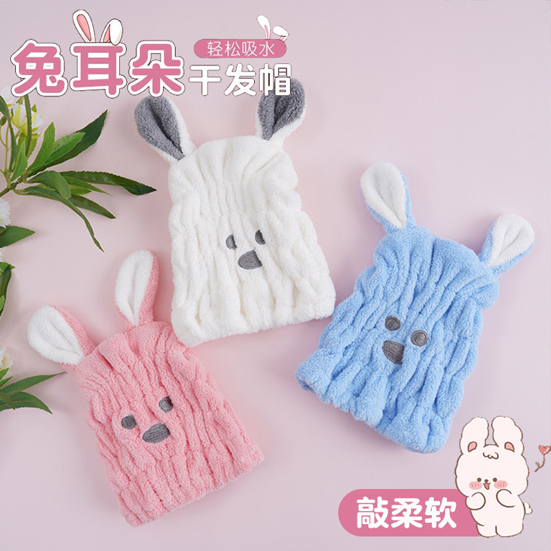 귀여운 토끼 귀 어린이 헤어 캡을 두껍게 한 산호 양털 흡수성 빠른 건조 캡 어린이 헤어 랩 도매스토어 가기