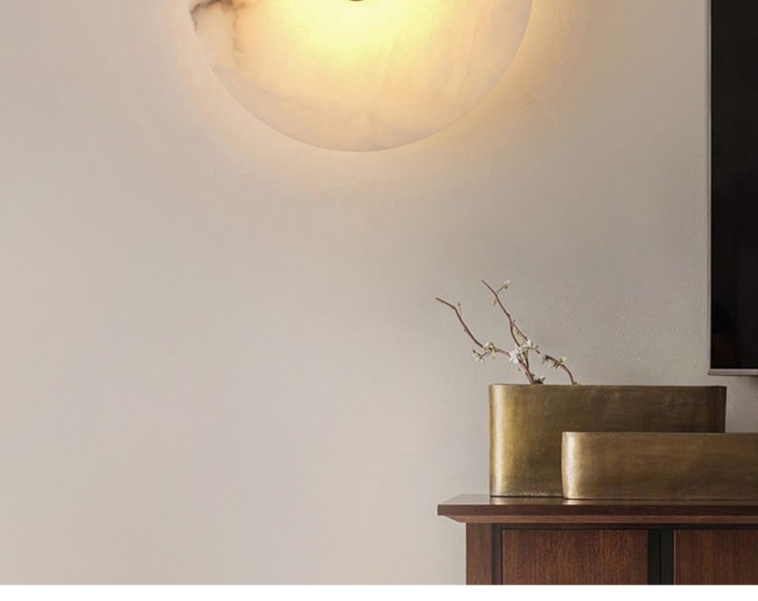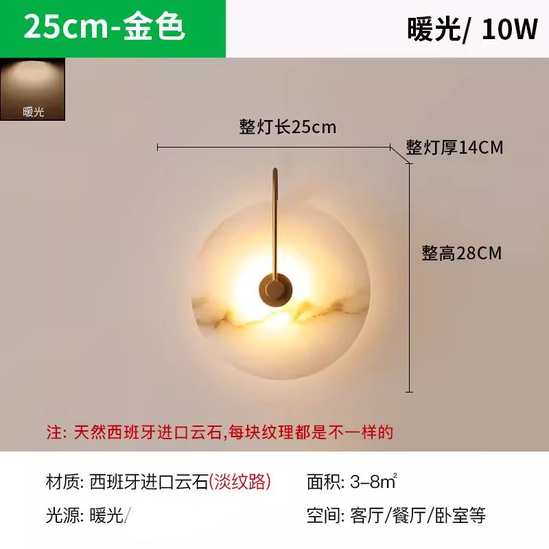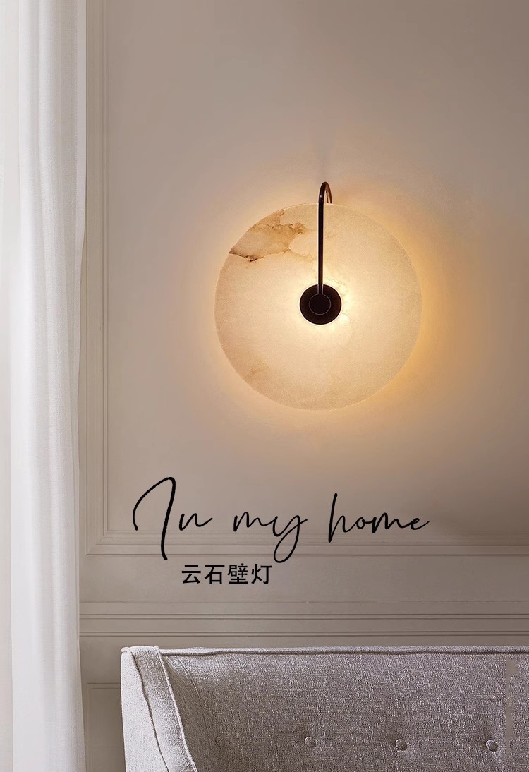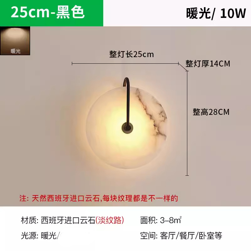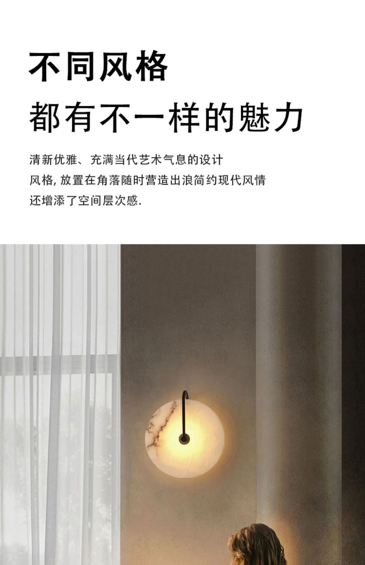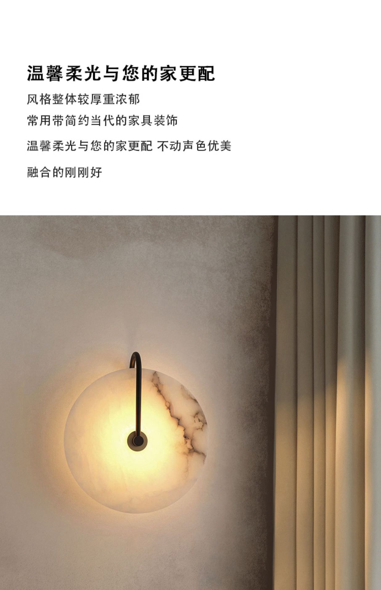 북유럽 포스트 모던 간단한 대리석 거실 배경 벽 램프 창조적 인 둥근 침실 침실 통로 벽 램프