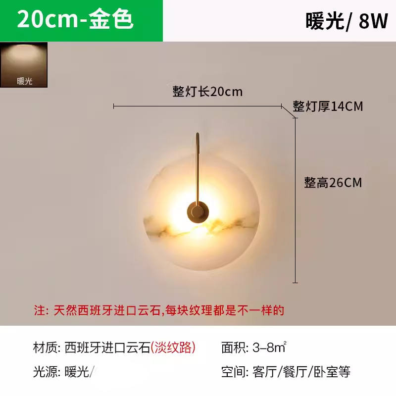 북유럽 포스트 모던 간단한 대리석 거실 배경 벽 램프 창조적 인 둥근 침실 침실 통로 벽 램프스토어 가기