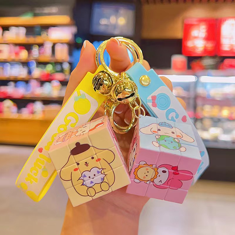 새로운 Sanrio Rubik의 큐브 크리에이티브 키 체인 도매 Culomi Schoolbag 펜던트 인형 귀여운 키 체인 선물스토어 가기