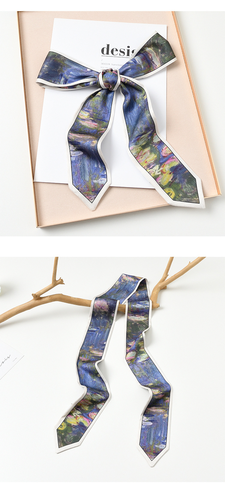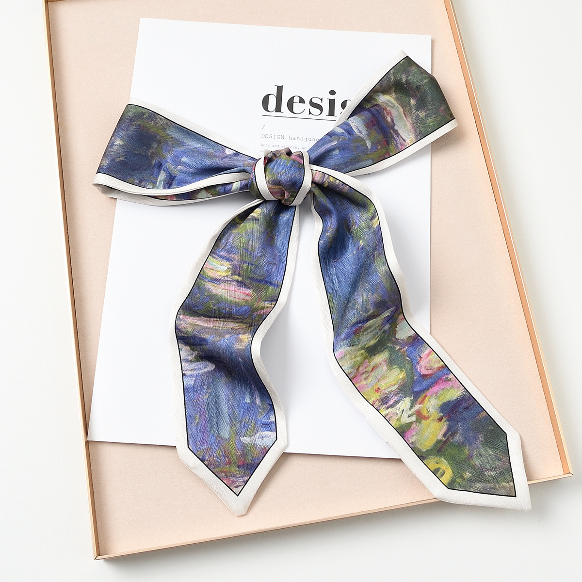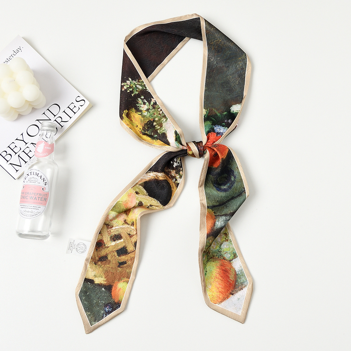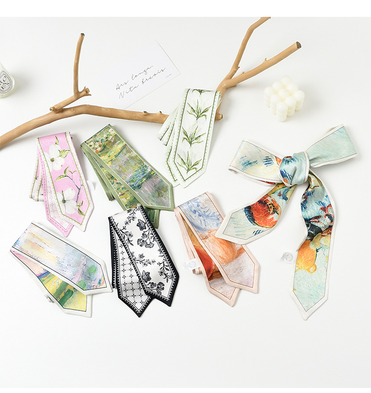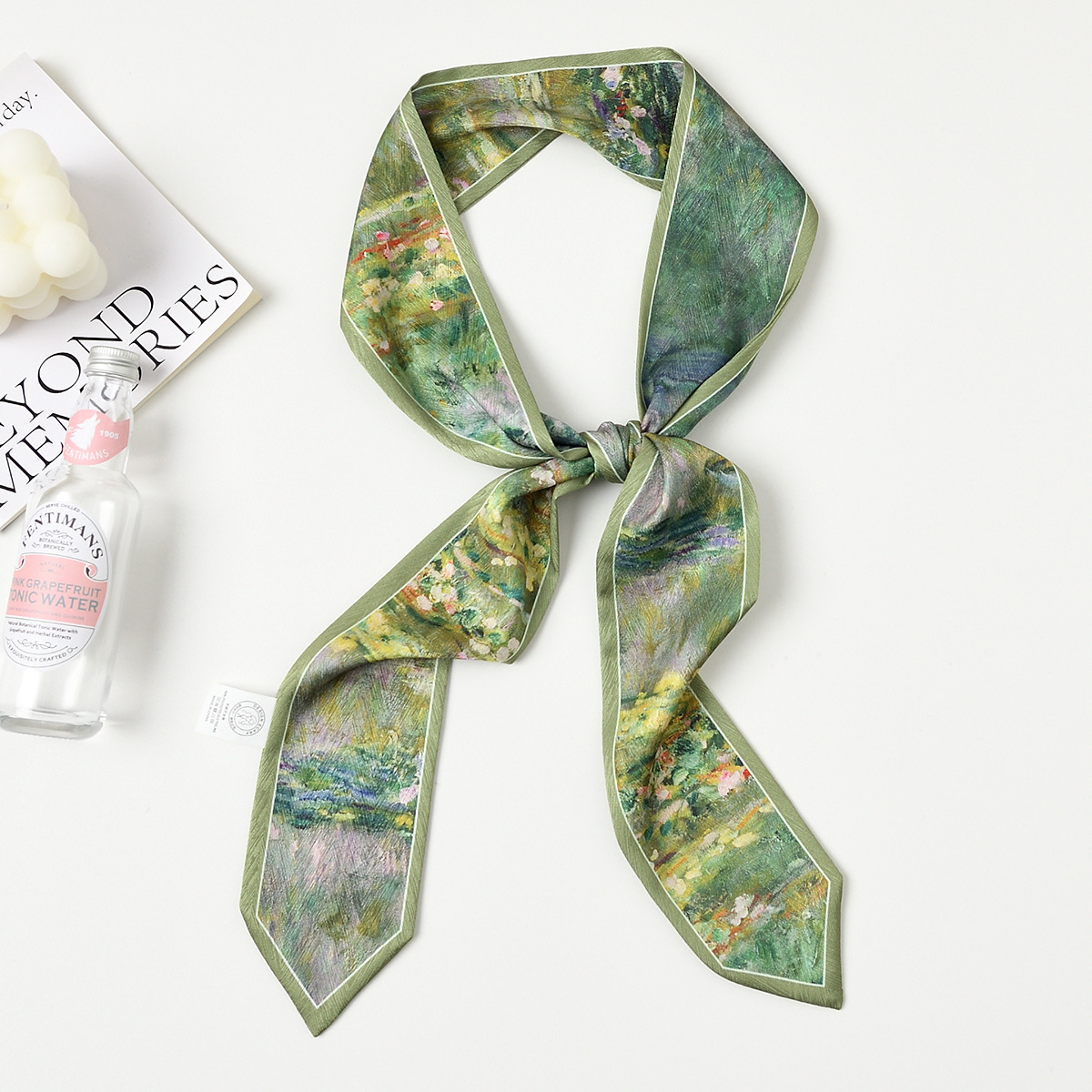 반 고흐 그린 플라워 필드 유화 실크 스카프 작은 긴 여자 올 매치 긴 직조 헤어 타이 폰 테일 백 리본 작은 스카프스토어 가기