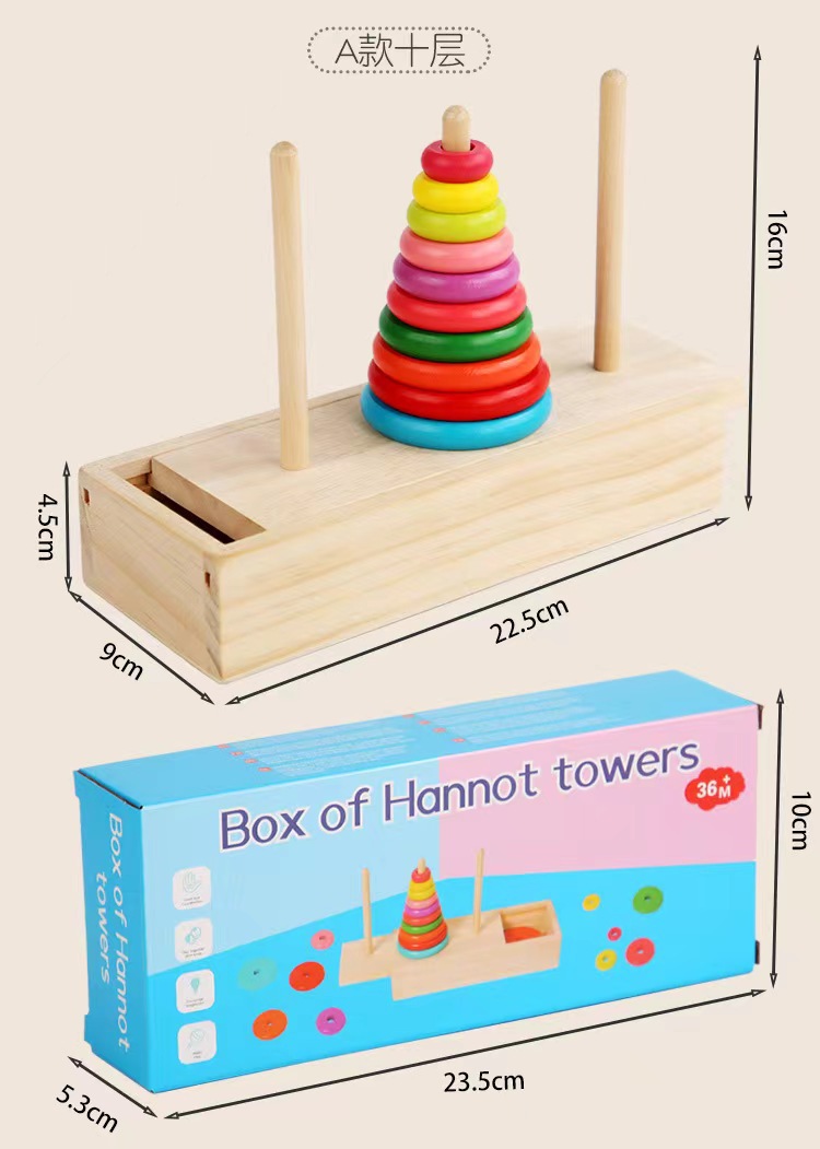 特价汉诺塔10层:0.22kg/个,彩盒包装:72个/箱