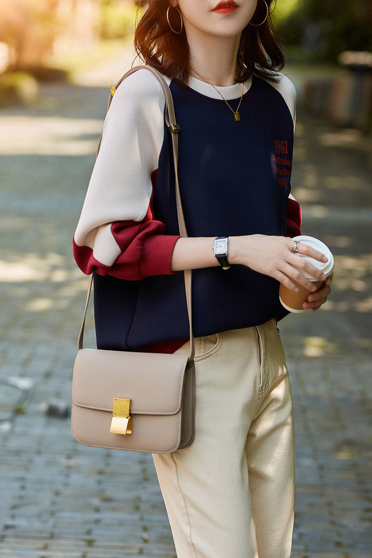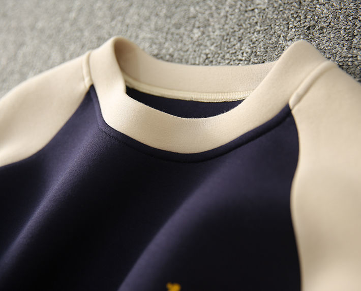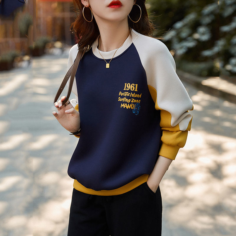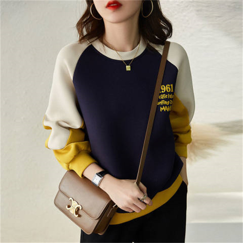 봄과 가을 캐주얼 팬 느슨한 둥근 목 Raglan 슬리브 여성 후드 패션 삼색 바느질 편지 대조 컬러 후드 탑스토어 가기