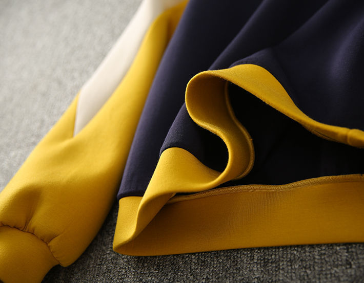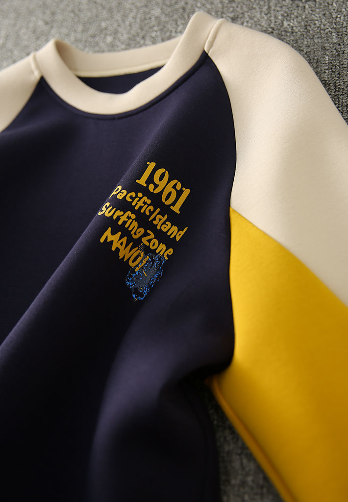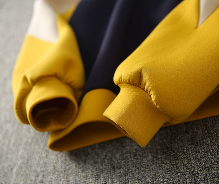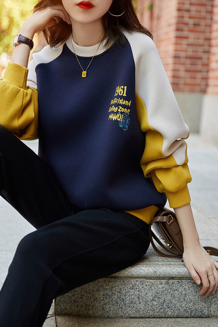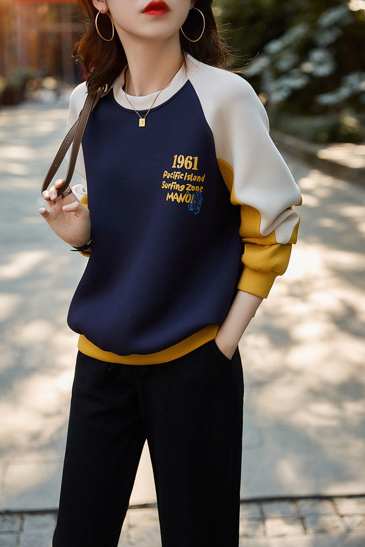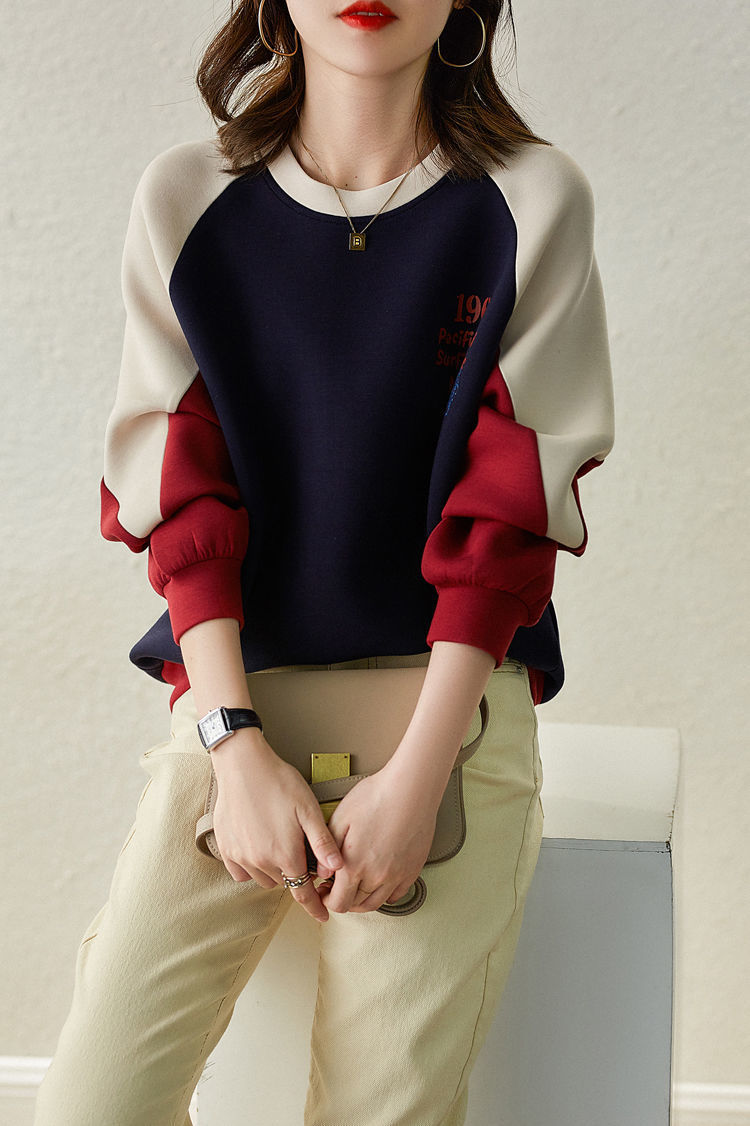 봄과 가을 캐주얼 팬 느슨한 둥근 목 Raglan 슬리브 여성 후드 패션 삼색 바느질 편지 대조 컬러 후드 탑