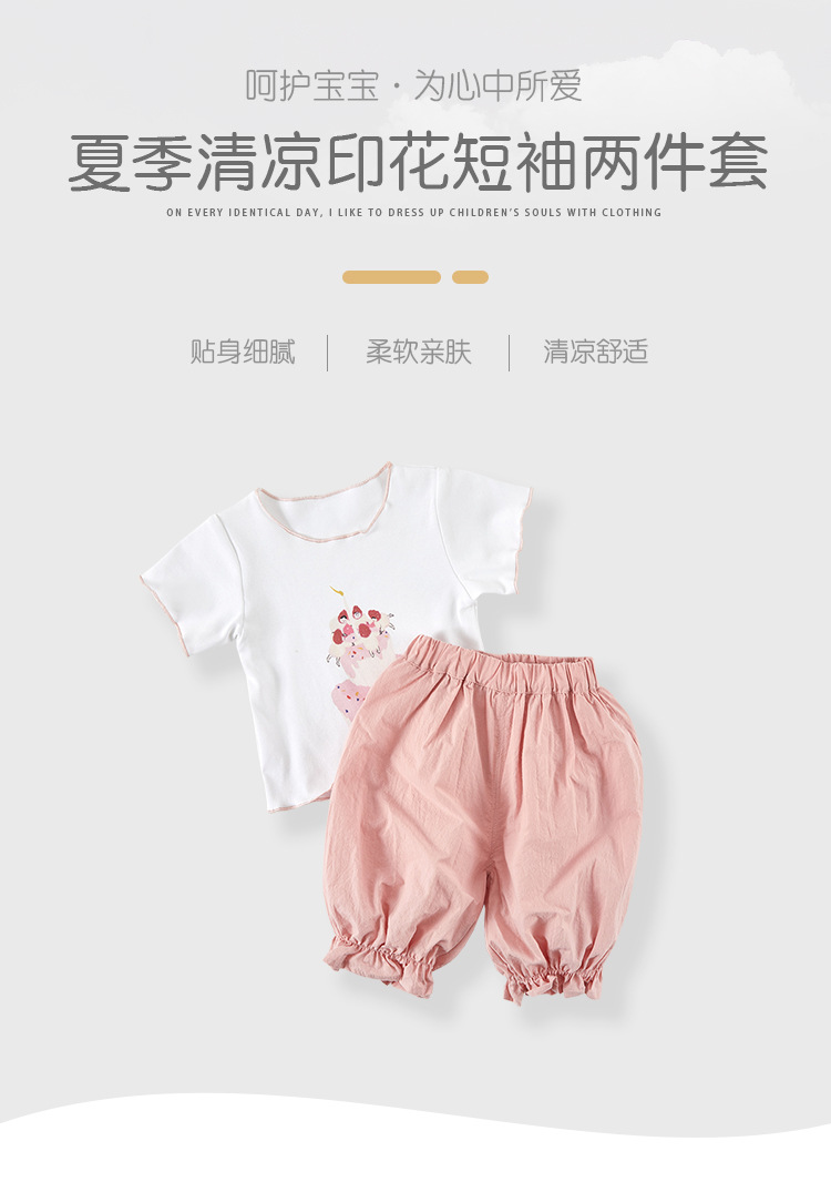 여름 귀여운 아기 세트 아기 소녀 반팔 탑 카프리 바지 두 조각 달콤한 얇은 아기 소녀 옷스토어 가기