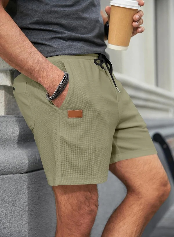 2025 여름 신작 대외 무역 아마존 와플 솔리드 컬러 반바지 남성 스포츠 캐주얼 바지 3점 바지