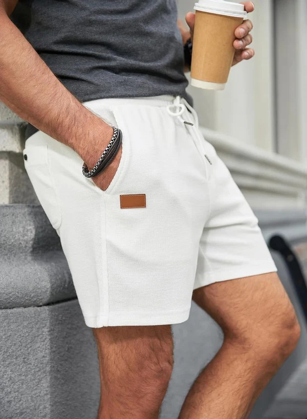 2025 여름 신작 대외 무역 아마존 와플 솔리드 컬러 반바지 남성 스포츠 캐주얼 바지 3점 바지스토어 가기