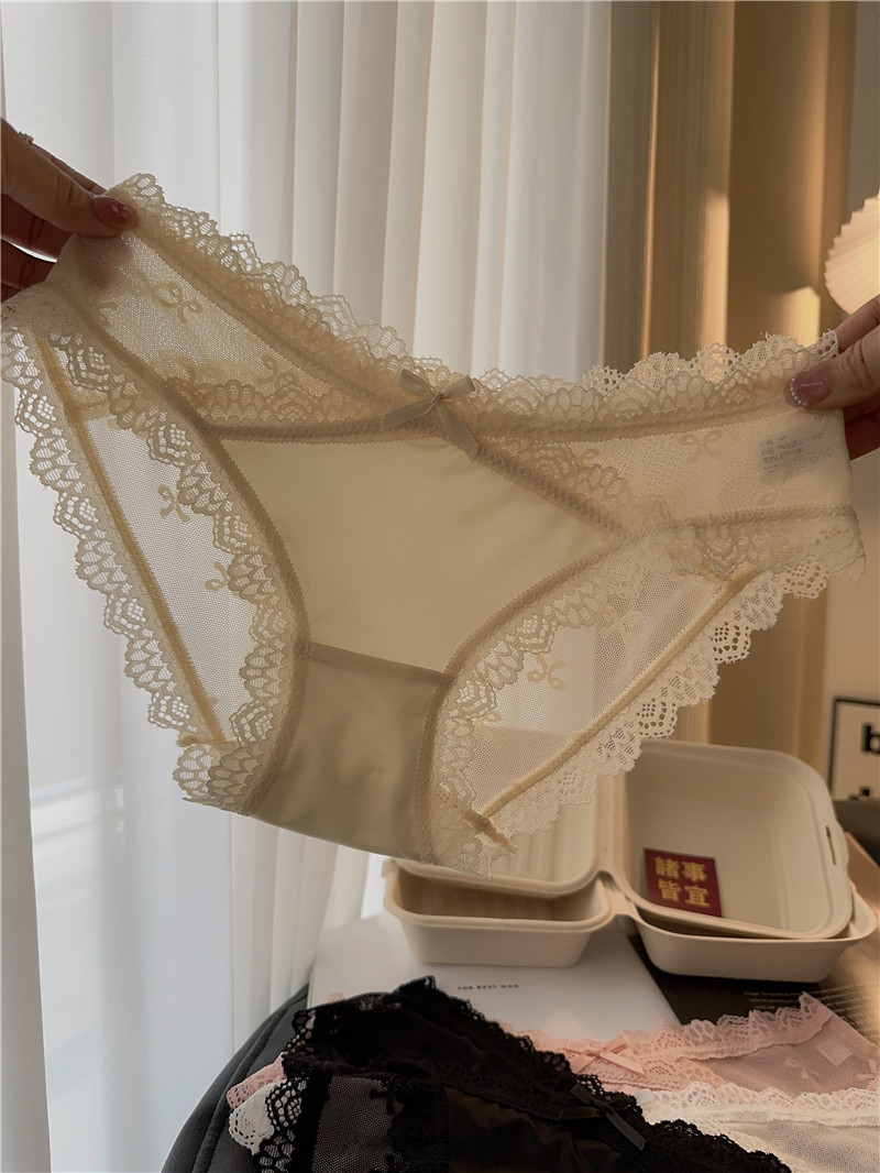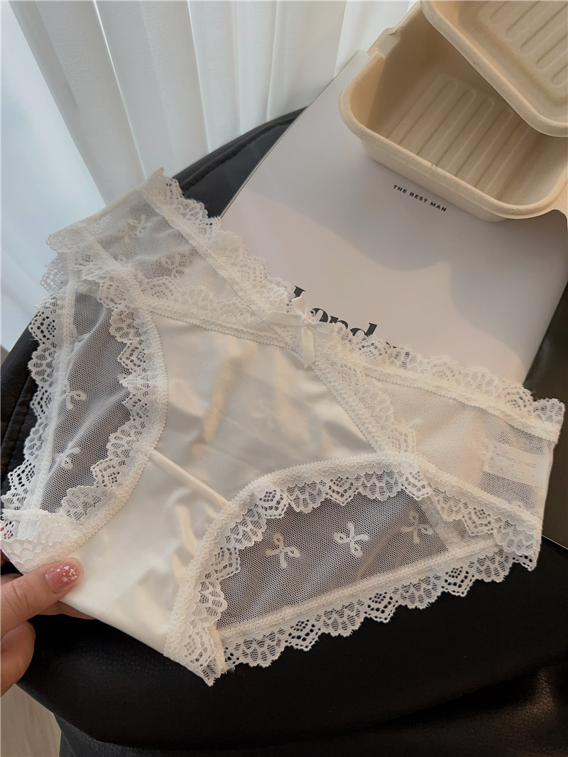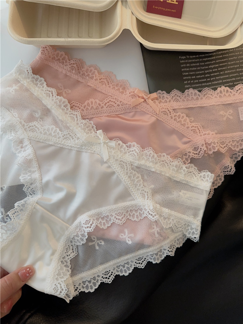 낭만적 인 프랑스 섹시한 새틴 속옷 여성용 레이스 메쉬 바느질 얇은 여름 추적없는 순수한 욕망 소녀의 브리프