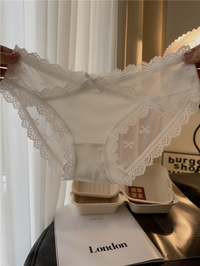 낭만적 인 프랑스 섹시한 새틴 속옷 여성용 레이스 메쉬 바느질 얇은 여름 추적없는 순수한 욕망 소녀의 브리프스토어 가기