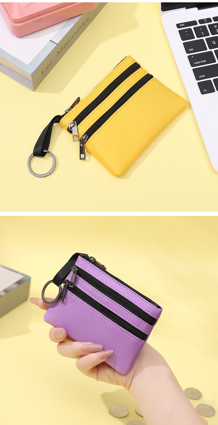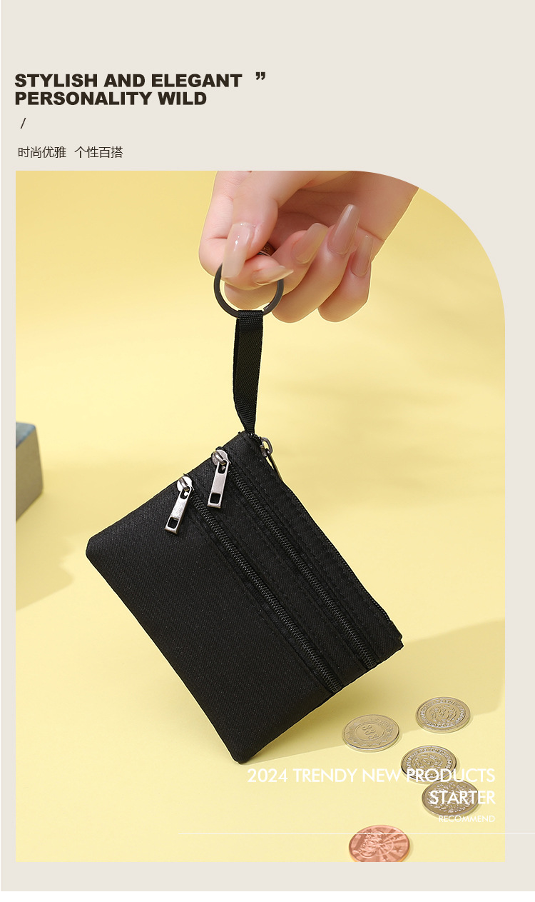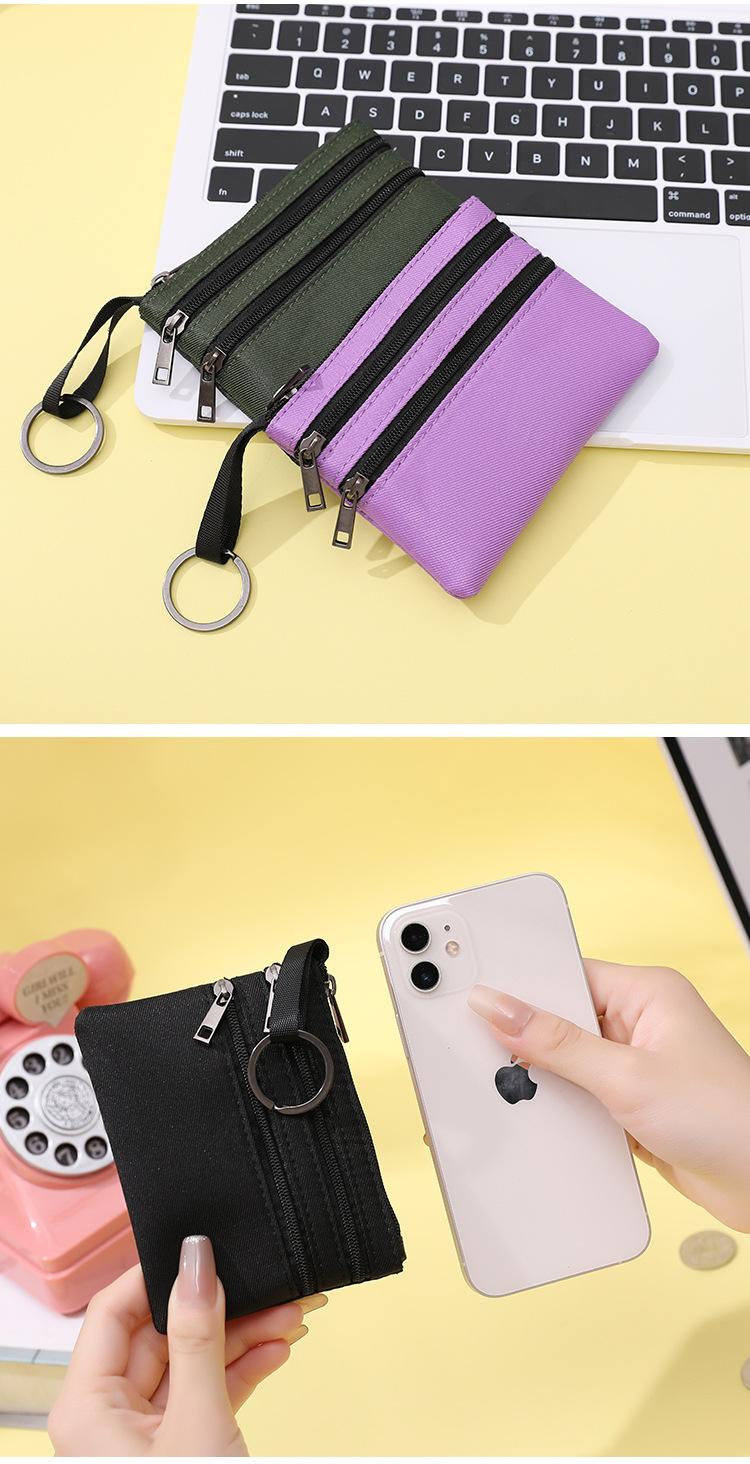 [재고 도매] 2024 새로운 국경 여성 동전 지갑 단색 멀티 포켓 지퍼 동전 키 케이스