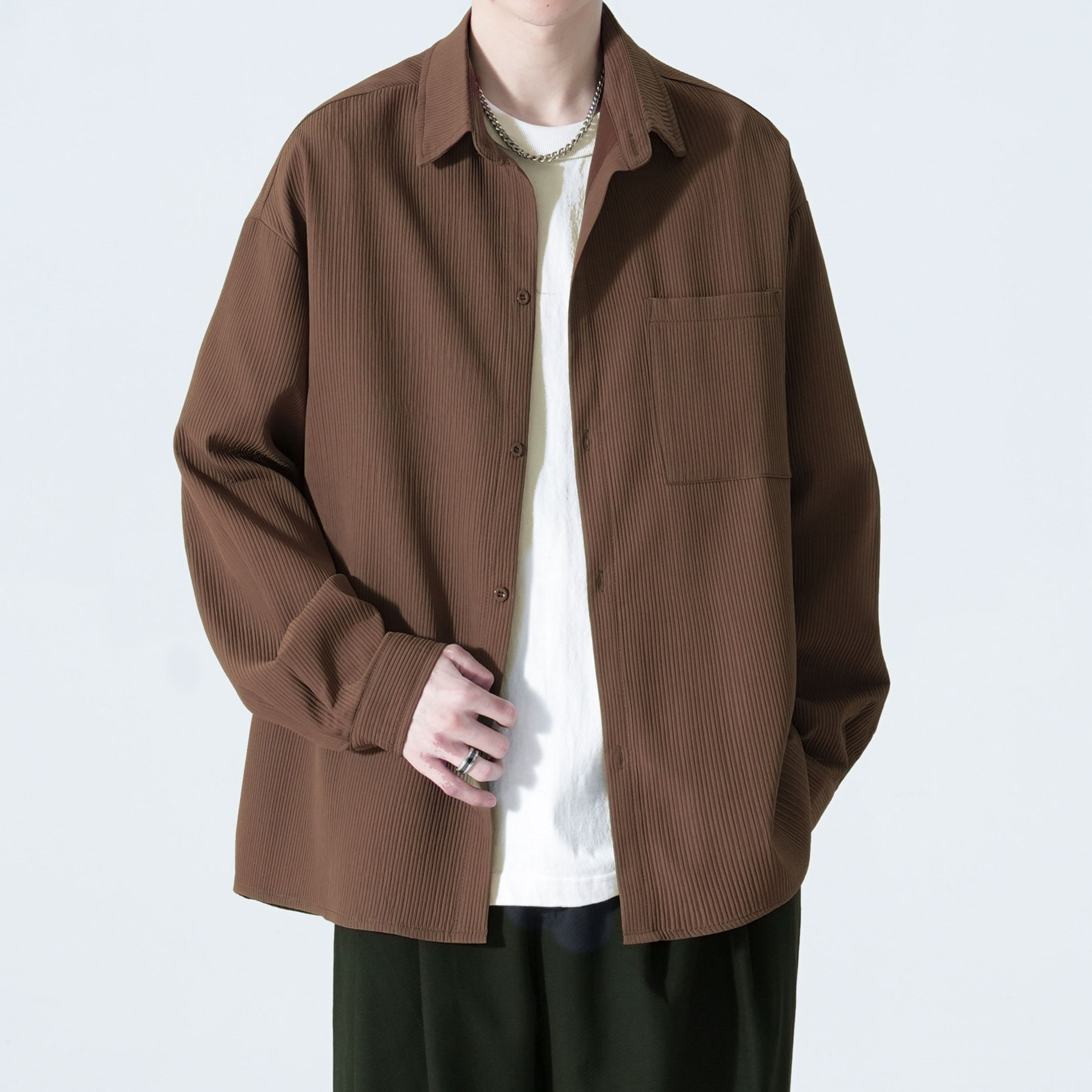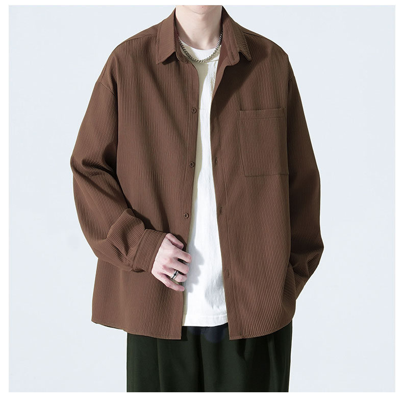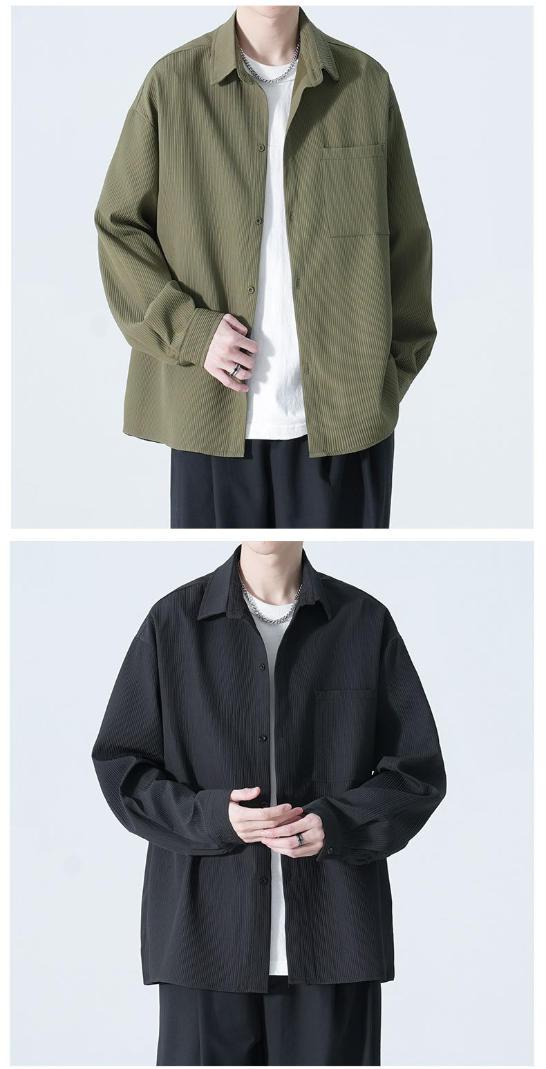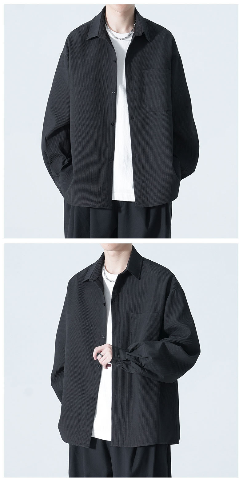 2025 여름 남성 아이스 실크 드레이프 캐주얼 다목적 셔츠 홍콩 스타일 루즈 대형 긴팔 셔츠 재킷스토어 가기
