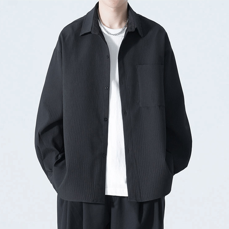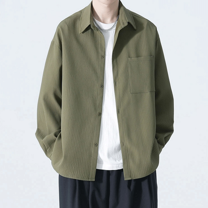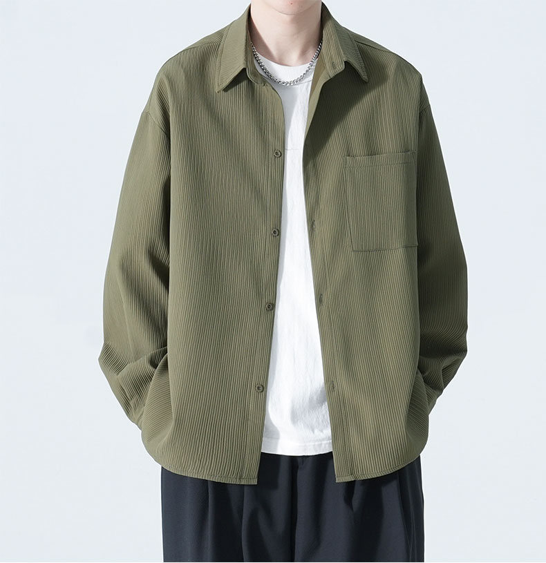2025 여름 남성 아이스 실크 드레이프 캐주얼 다목적 셔츠 홍콩 스타일 루즈 대형 긴팔 셔츠 재킷
