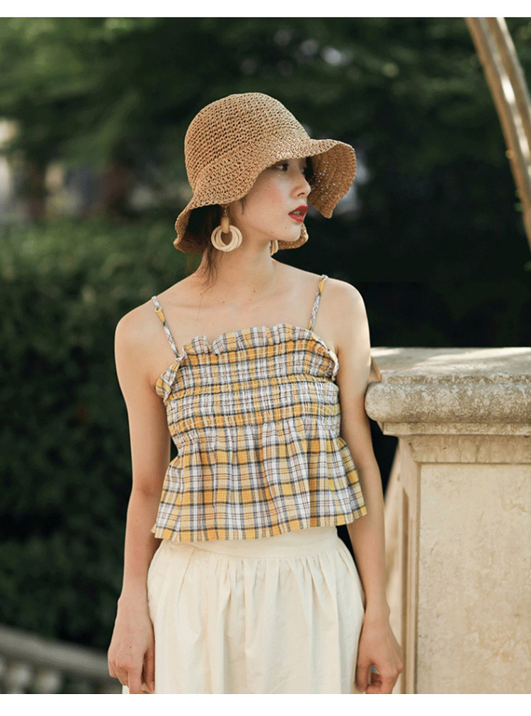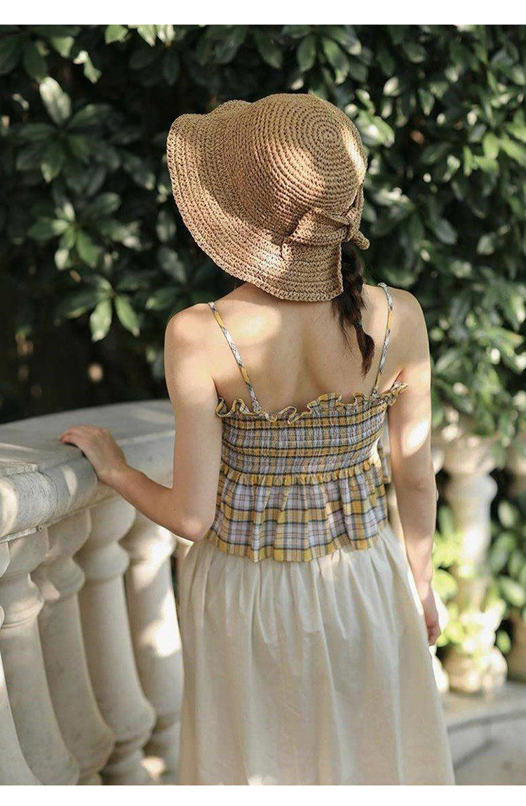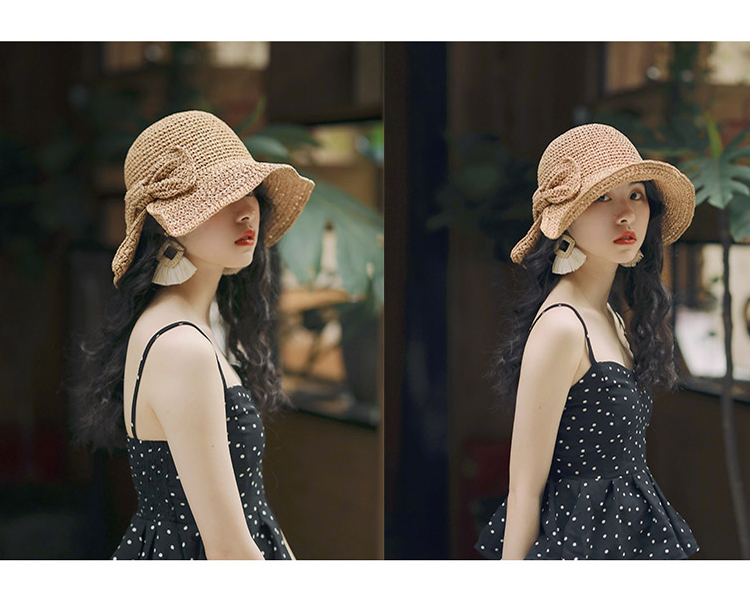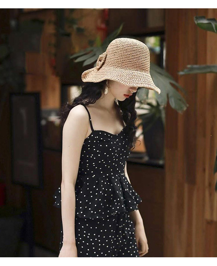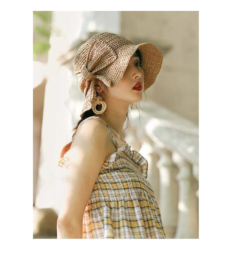 여름 밀짚모자 여성 봄 · 가을 크로셰 어부 모자 한국 접이식 태양모자