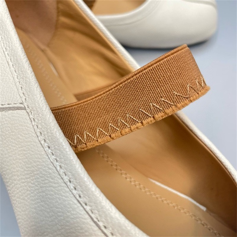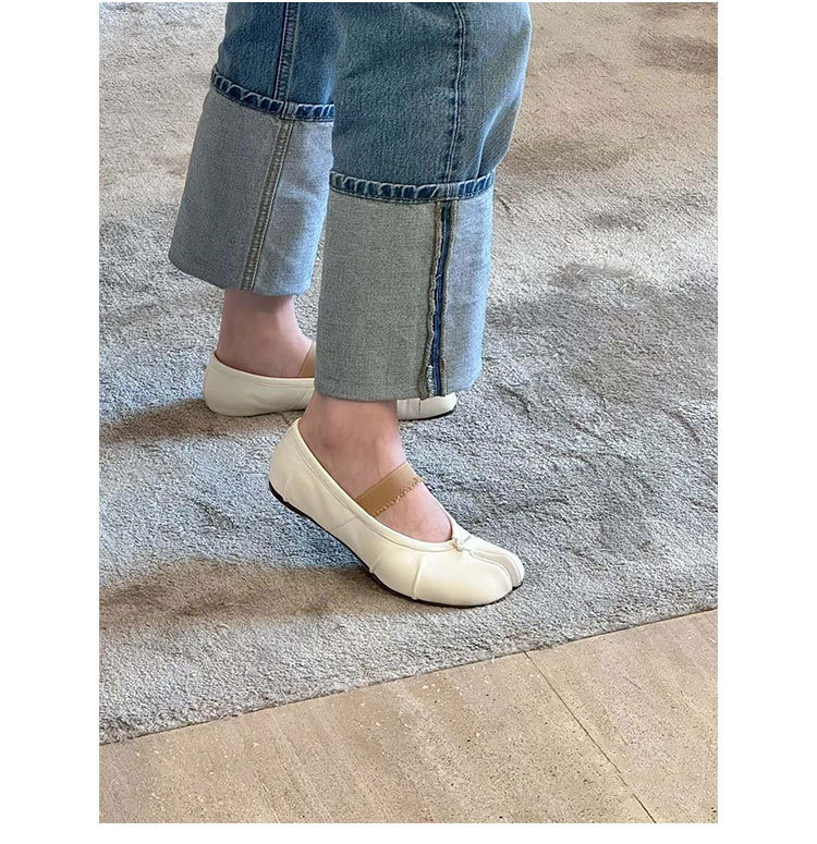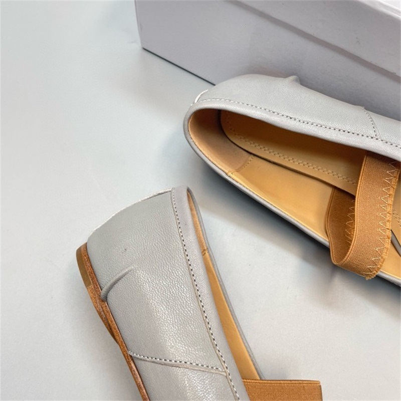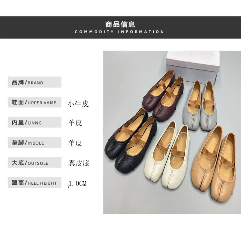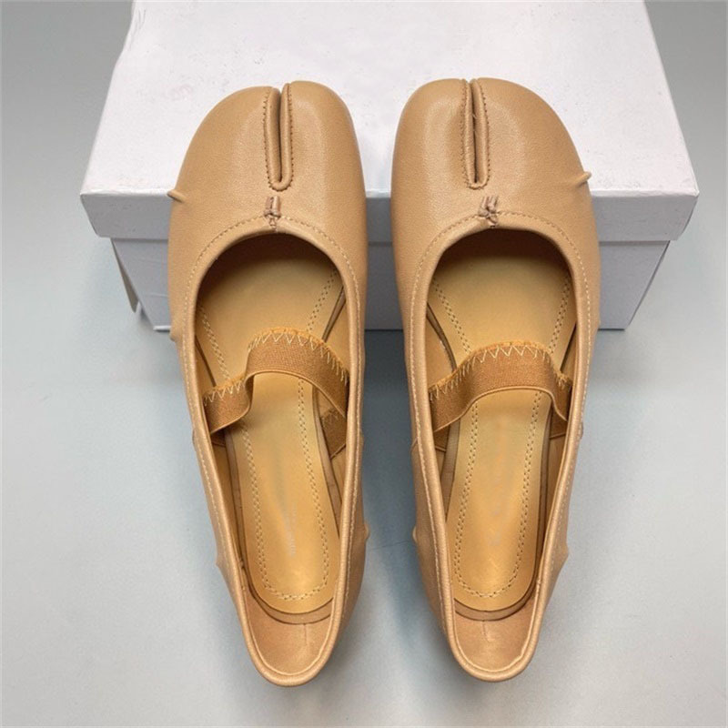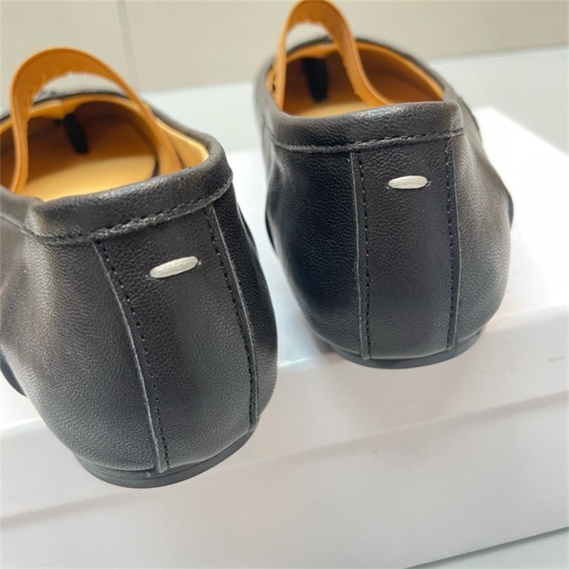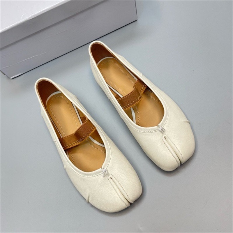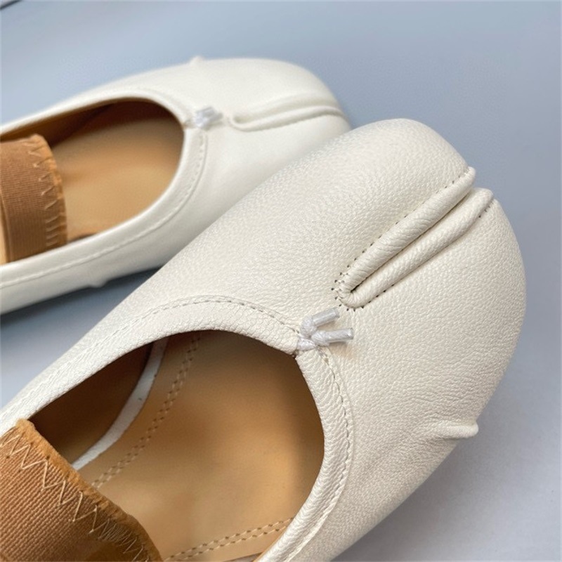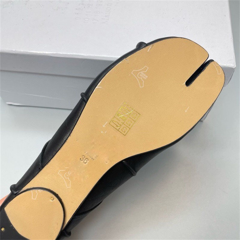 새로운 MM6 패션 발레 신발 유행 얕은 입 부드러운 밑창 양가죽 플랫 스커트 돼지 트로터-발가락 단일 레이어 신발스토어 가기