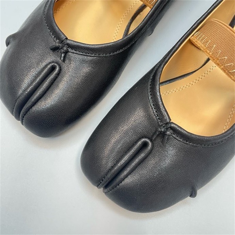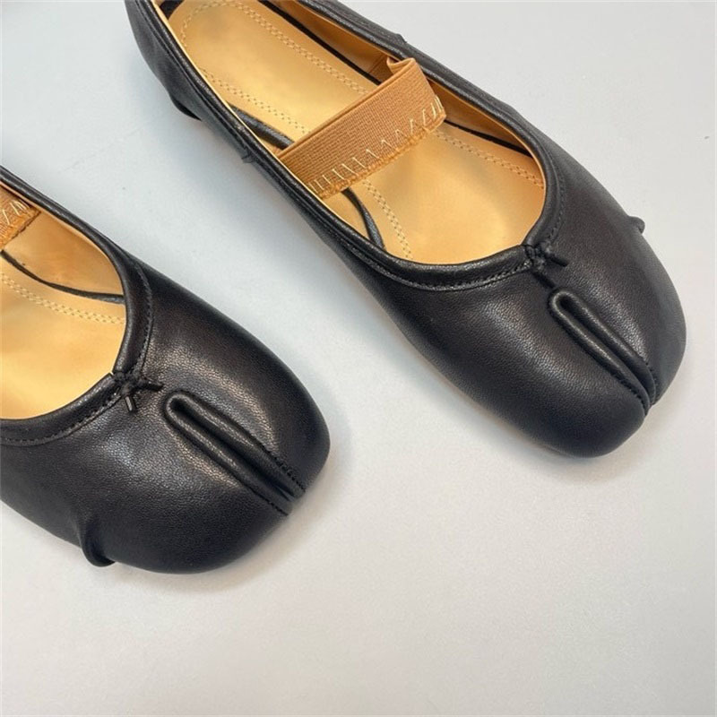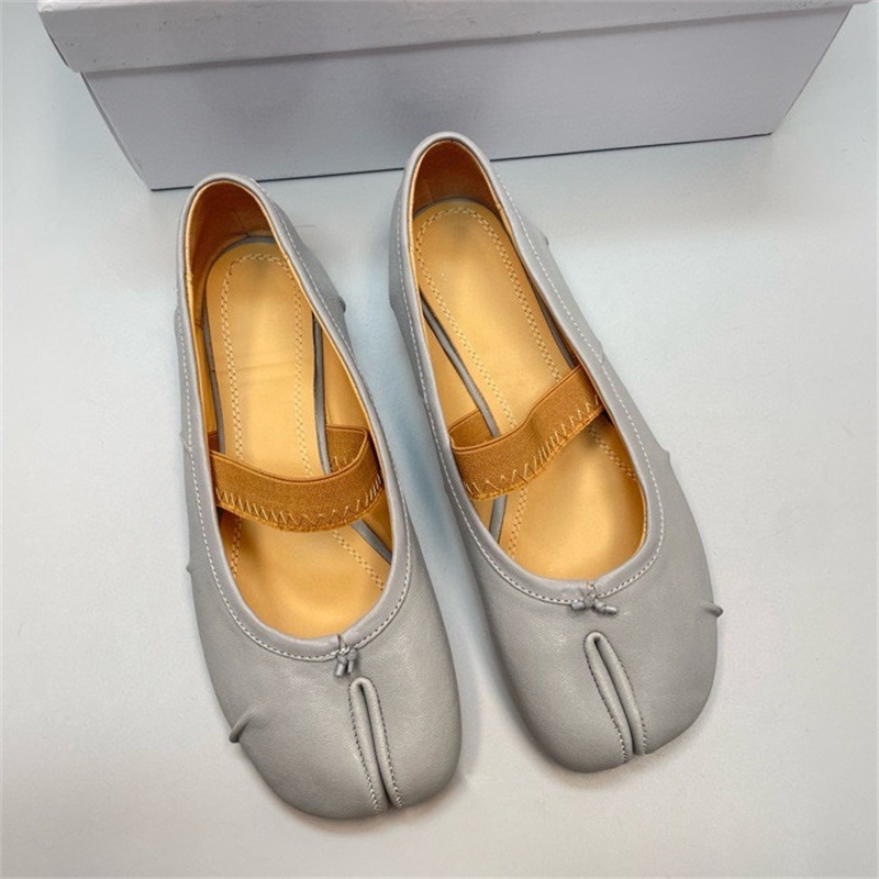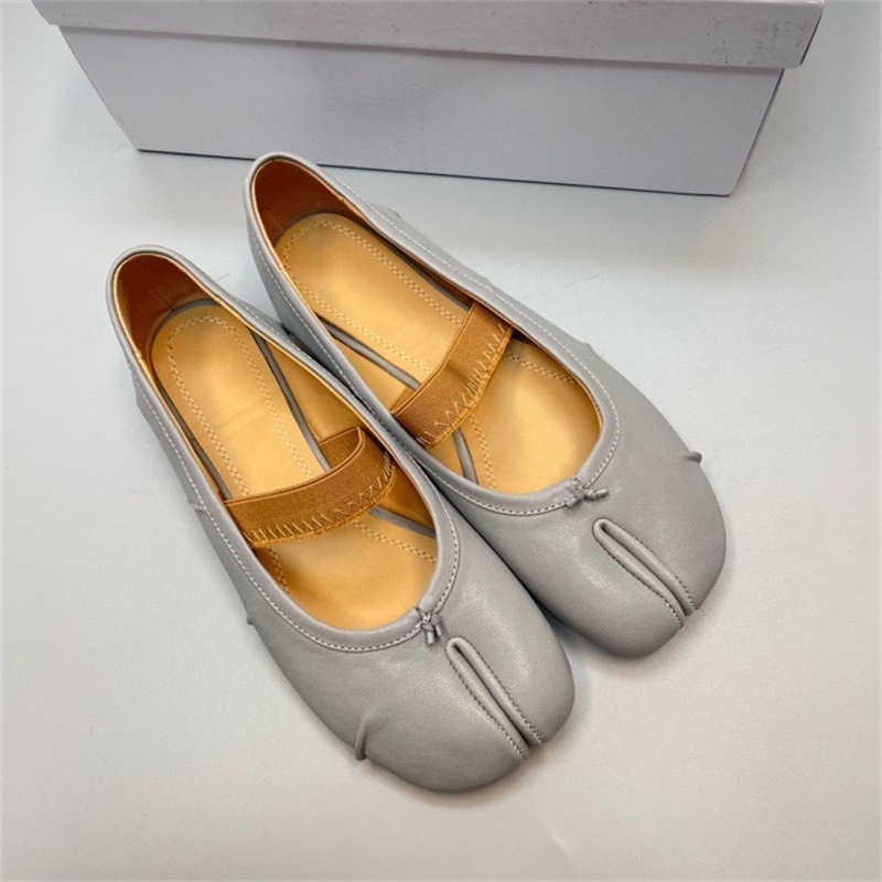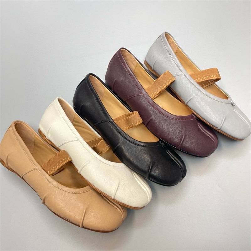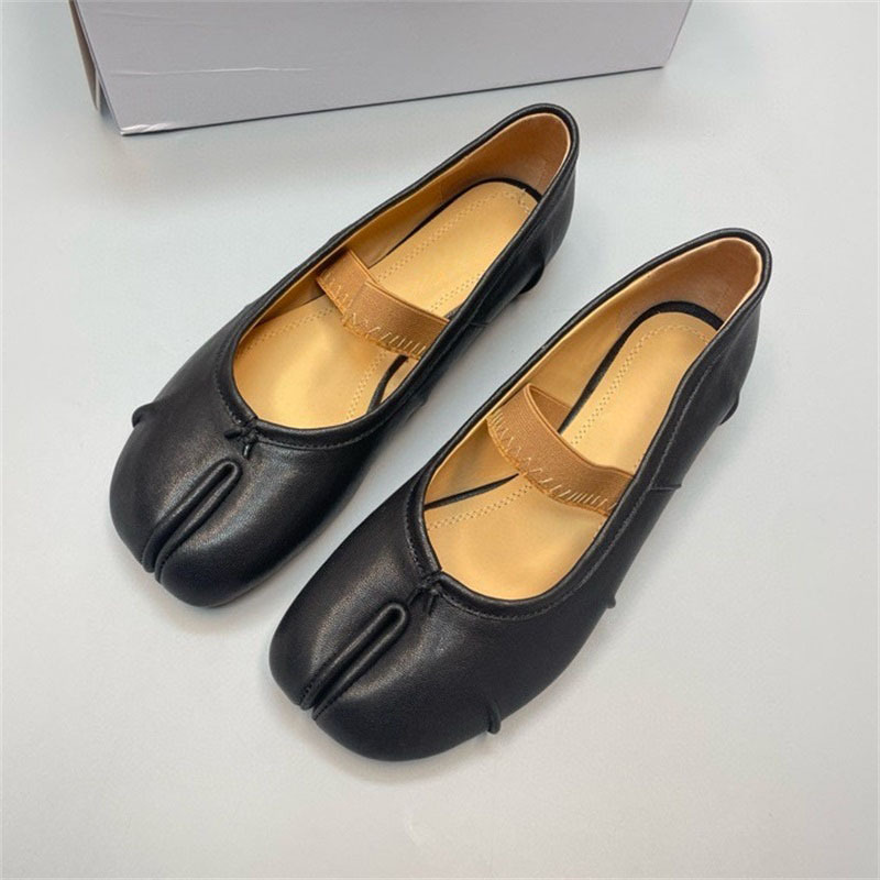 새로운 MM6 패션 발레 신발 유행 얕은 입 부드러운 밑창 양가죽 플랫 스커트 돼지 트로터-발가락 단일 레이어 신발
