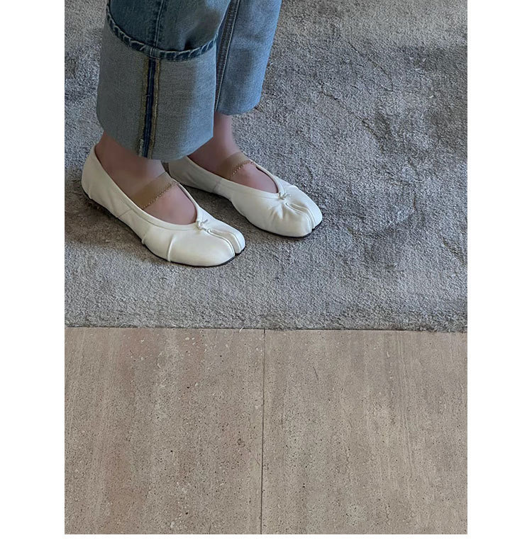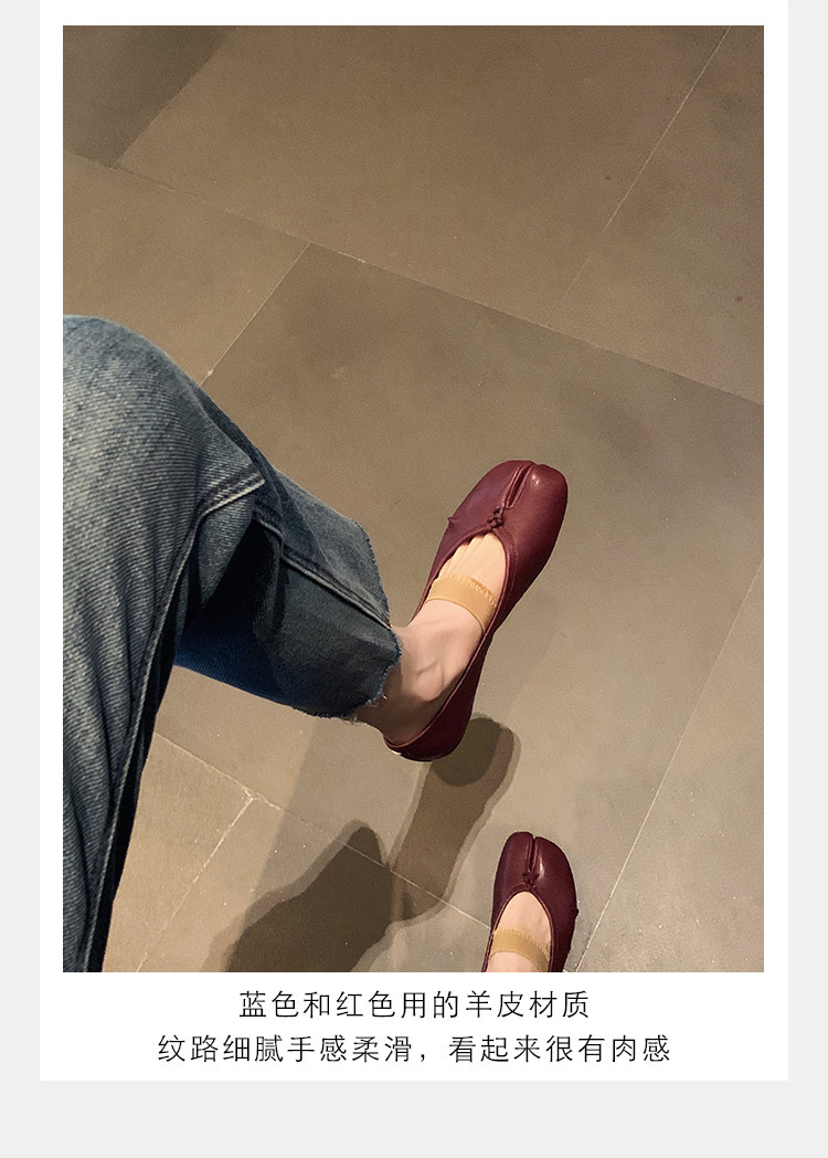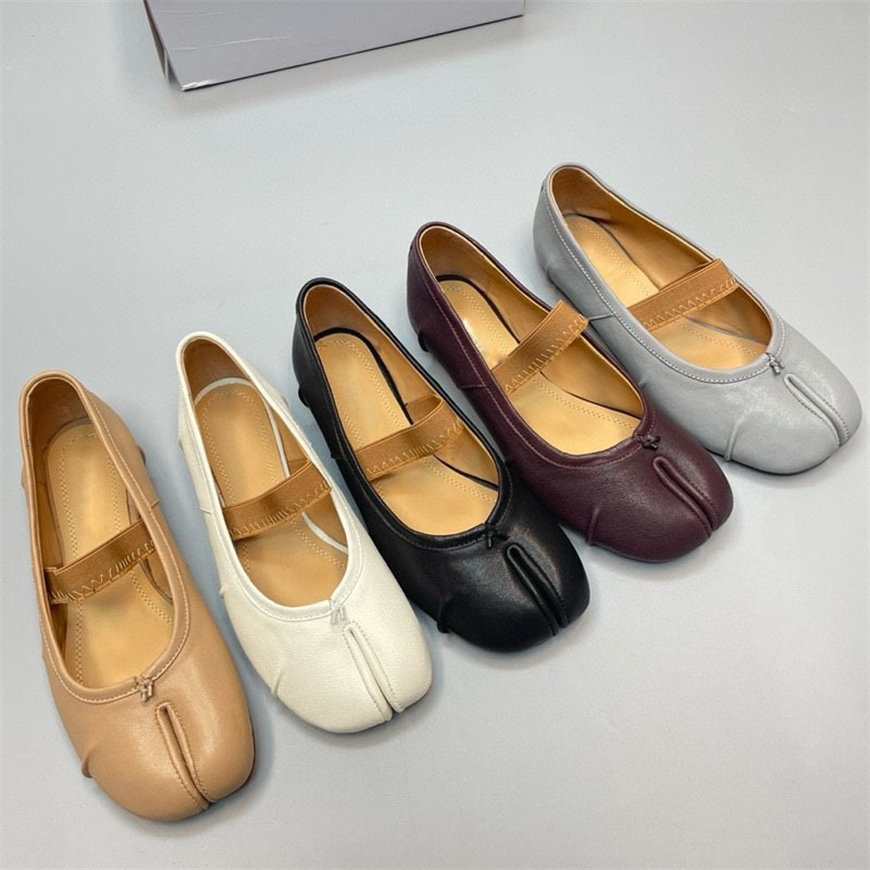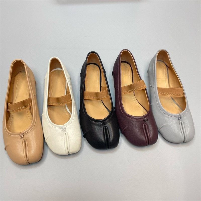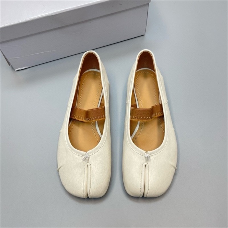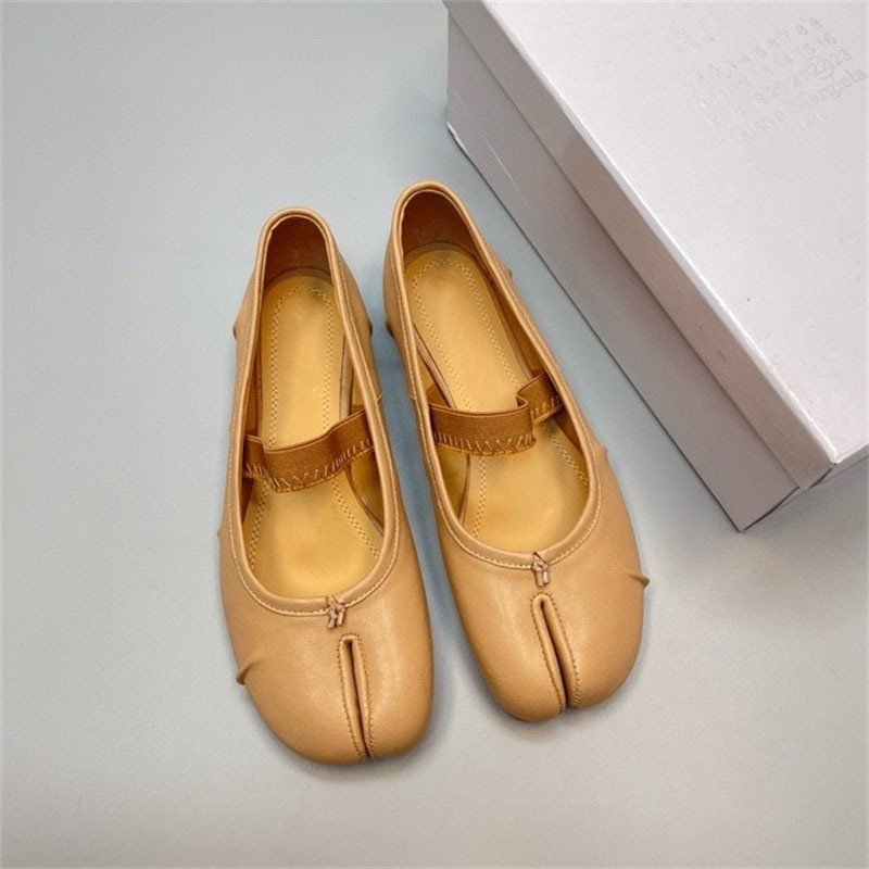 새로운 MM6 패션 발레 신발 유행 얕은 입 부드러운 밑창 양가죽 플랫 스커트 돼지 트로터-발가락 단일 레이어 신발