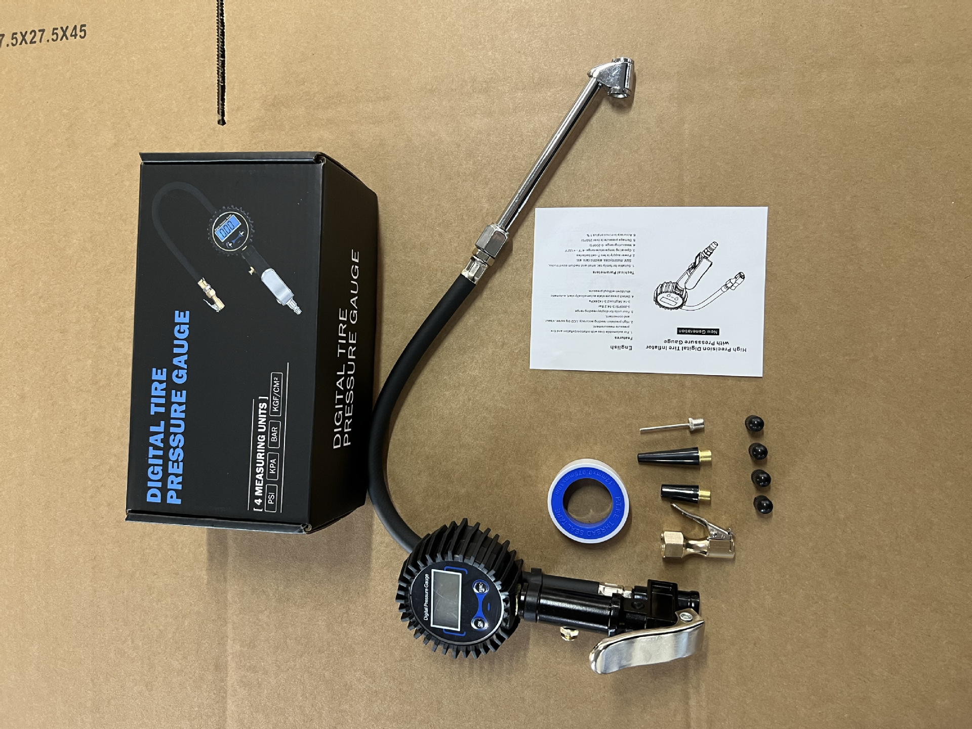 1.全新升级,铜加厚加强快速卡盘,可快速连接和断开轮胎喷嘴,无泄漏;具有压力测量、充气、放气三种功能,高精度液晶数字仪表显示,有四个单元可切换,使用寿命长。