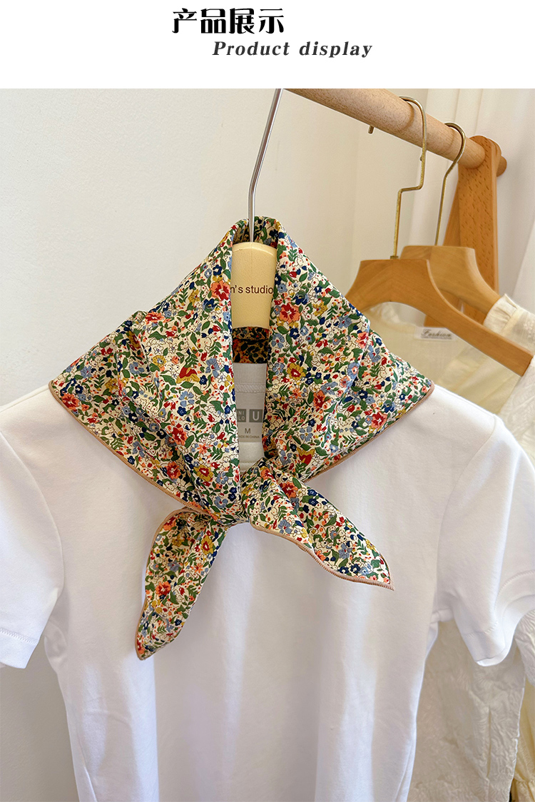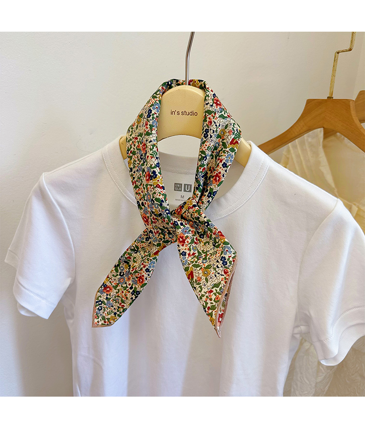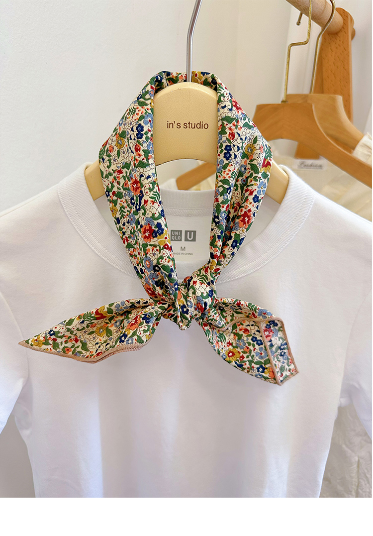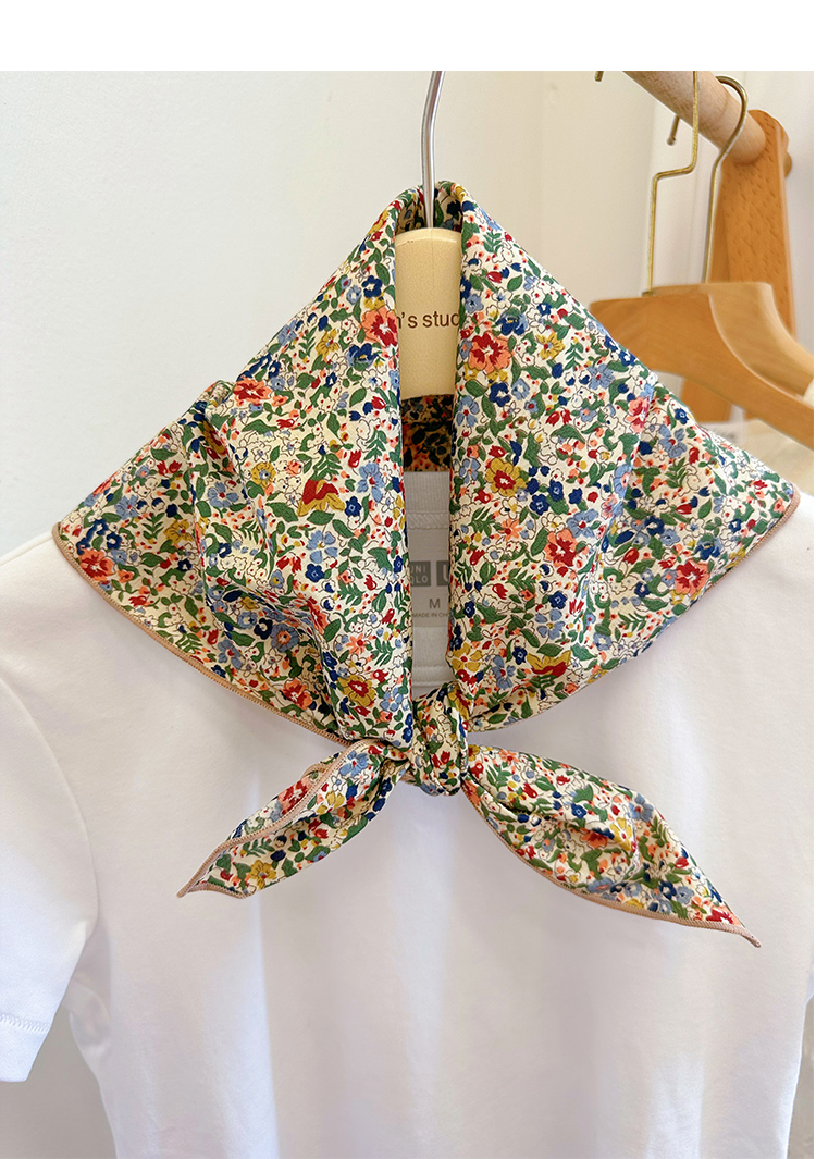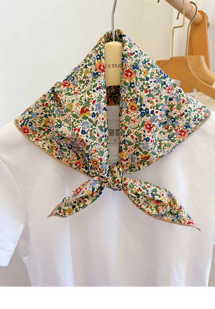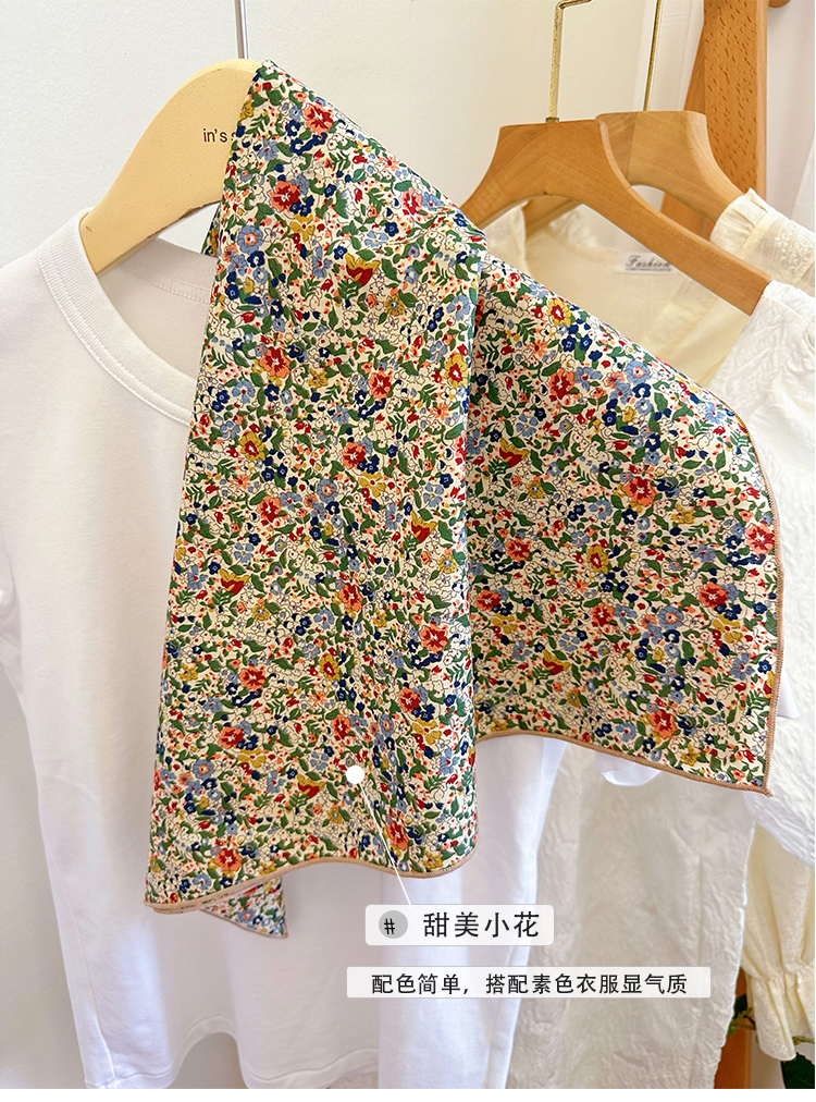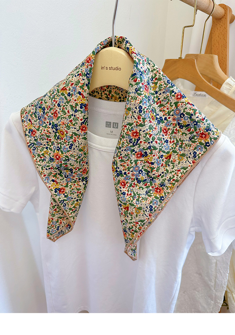 봄과 가을 베이지베이스 플로랄 코튼 스몰 스퀘어 스카프 여름 실크 스카프 올 매치 일본 모리 소녀 목회면 스카프스토어 가기