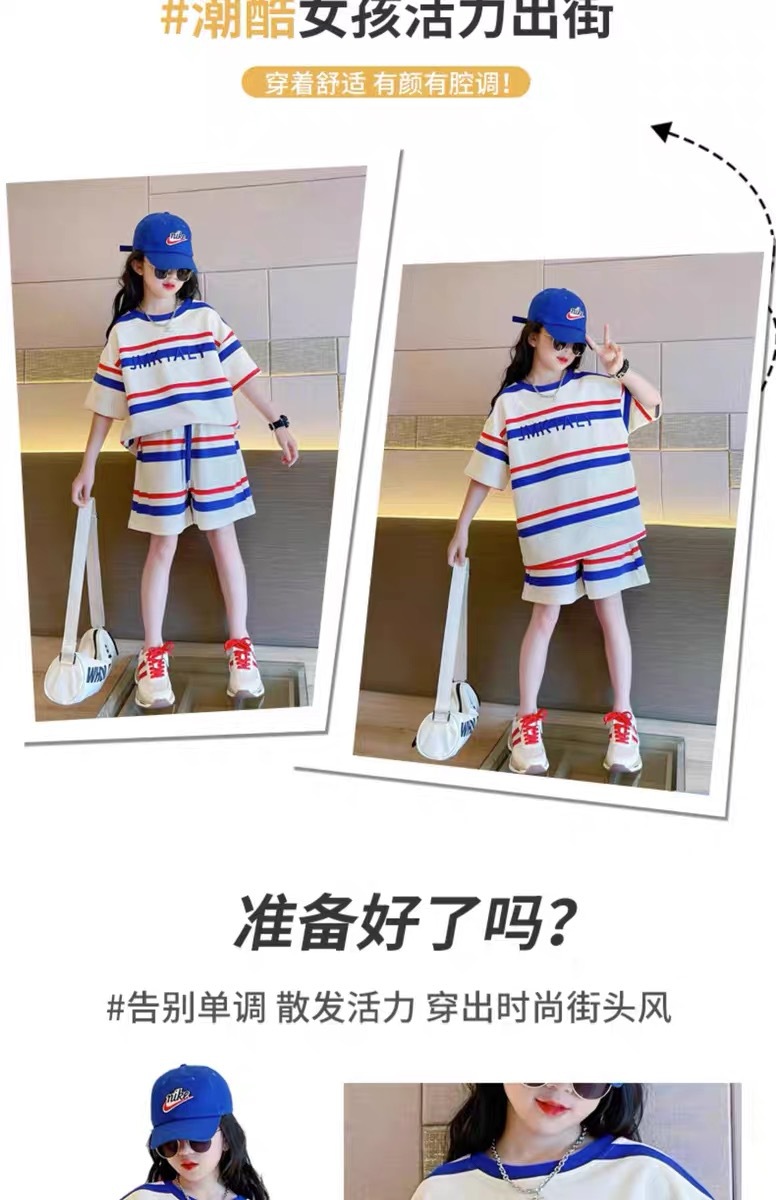 어린이 반팔 티셔츠 세트 여름 새 스타일 얇은 여자 소년 서양식 학생 스포츠 루스를 입고 중 큰 아이들스토어 가기
