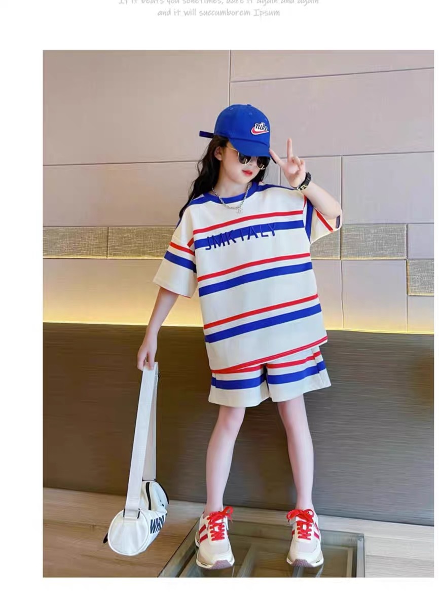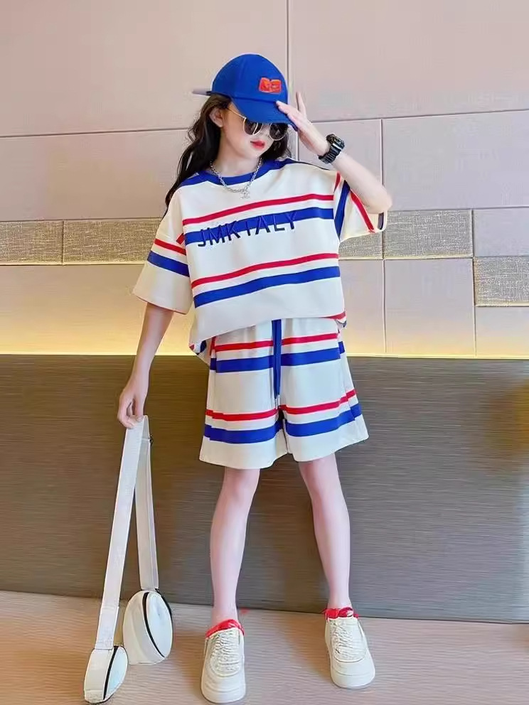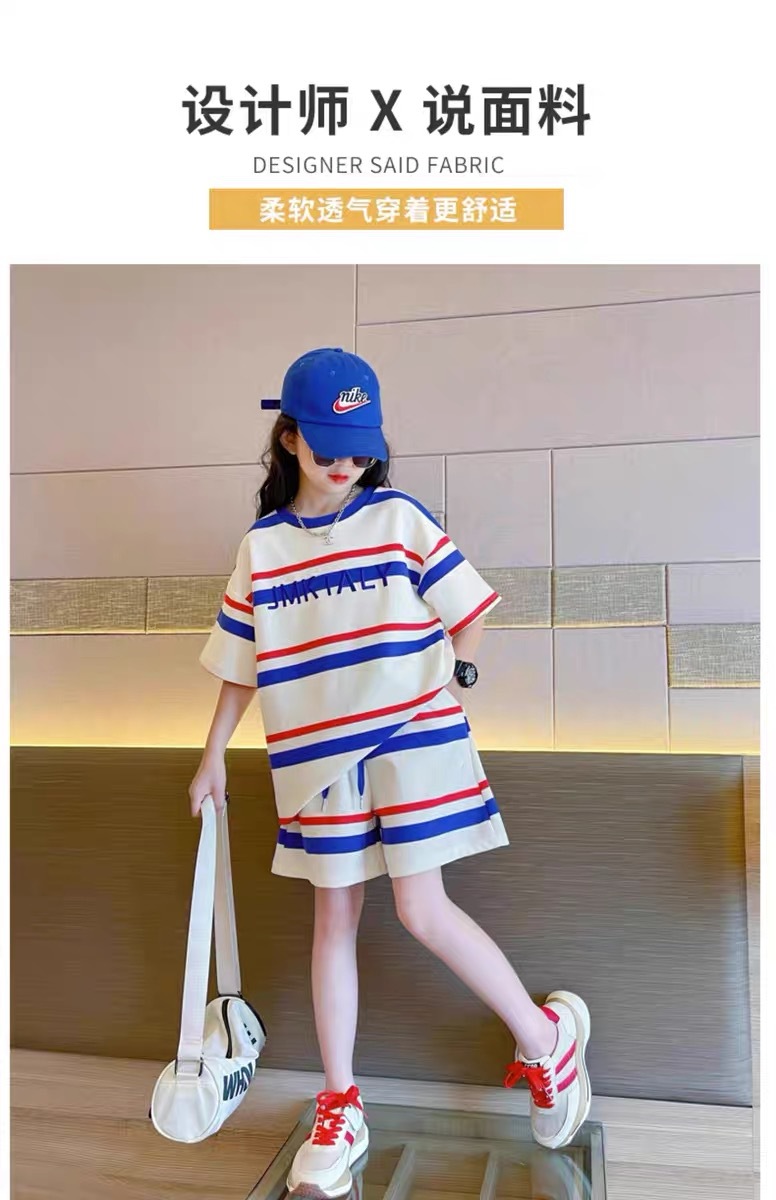 어린이 반팔 티셔츠 세트 여름 새 스타일 얇은 여자 소년 서양식 학생 스포츠 루스를 입고 중 큰 아이들