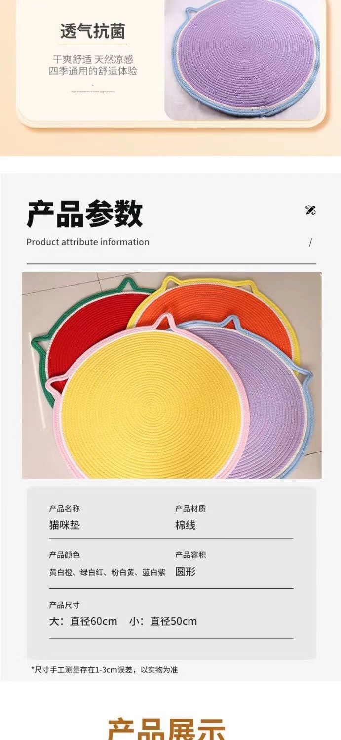 면로프 고양이 스크래치 패드, 뜨개질된 애완 고양이 수면용 면 패드, 고양이 눕기용 매트, 내구성 있는 면실로 만든 발톱 갈이 패드