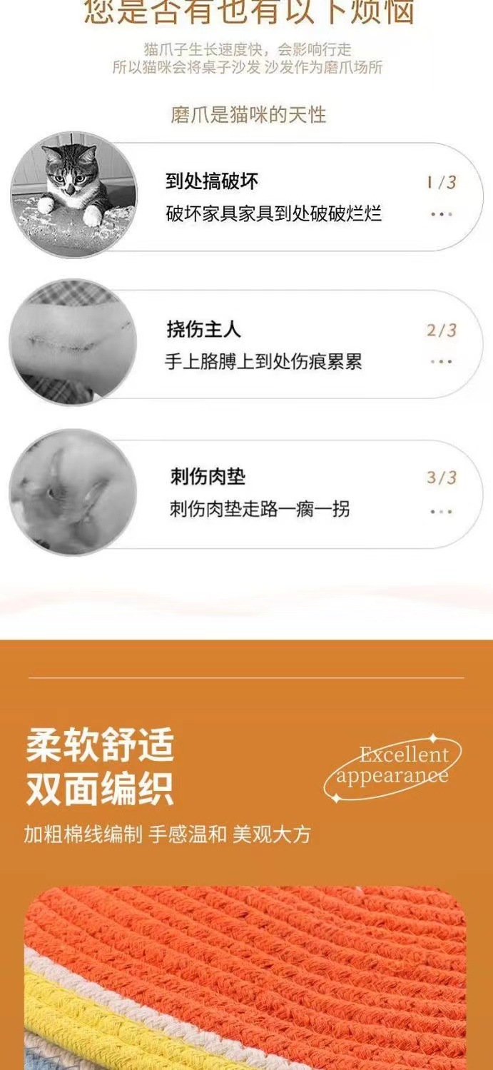 면로프 고양이 스크래치 패드, 뜨개질된 애완 고양이 수면용 면 패드, 고양이 눕기용 매트, 내구성 있는 면실로 만든 발톱 갈이 패드스토어 가기