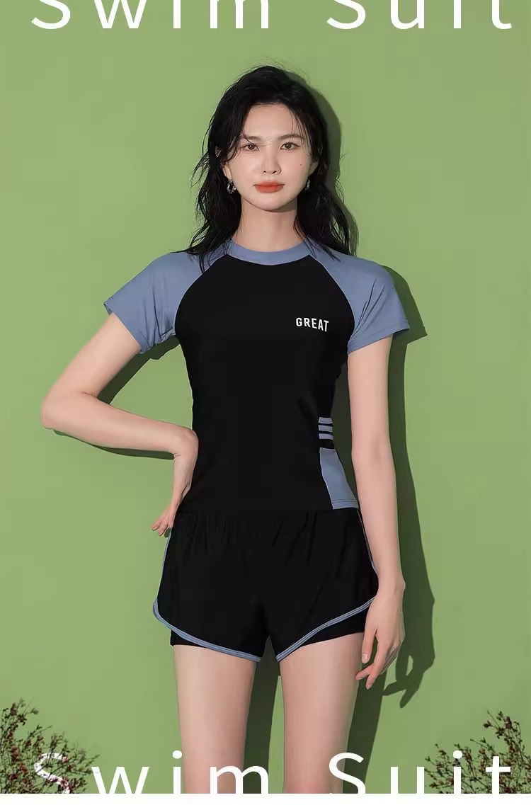 스포츠 수영복 여성 투피스 세트 분할 보수 복서 한국 스타일 리틀 브리즈 학생 온천 수영복