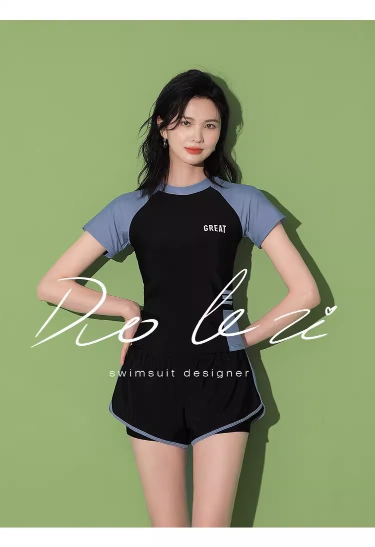 스포츠 수영복 여성 투피스 세트 분할 보수 복서 한국 스타일 리틀 브리즈 학생 온천 수영복스토어 가기