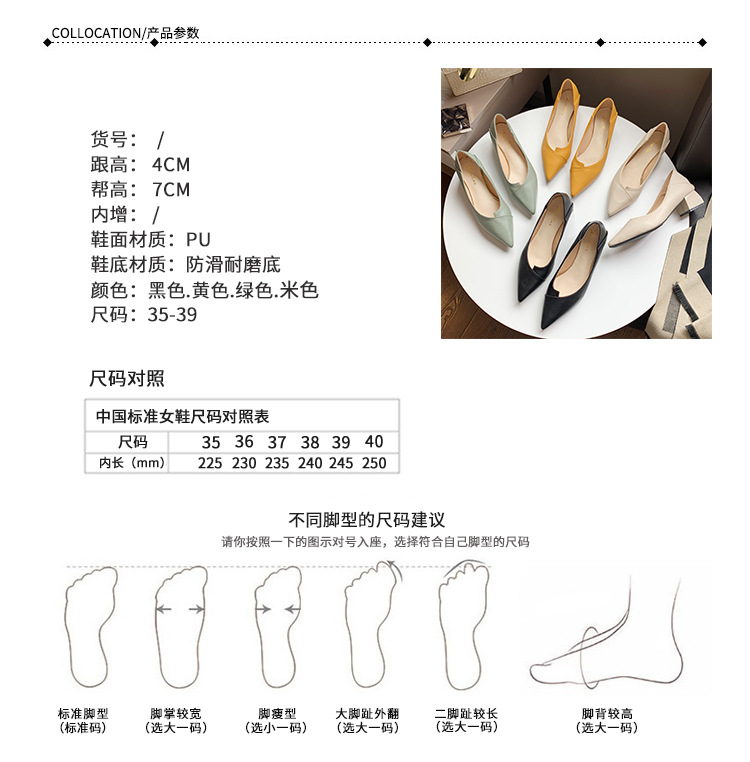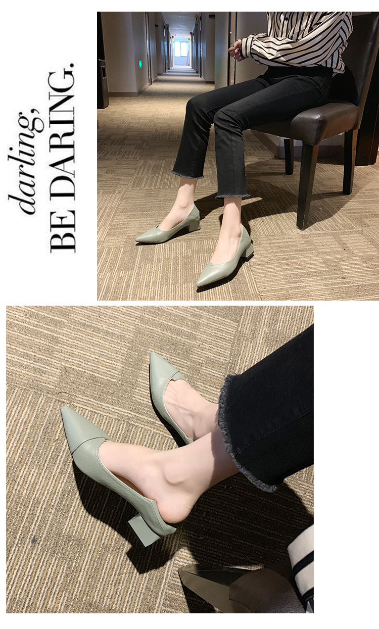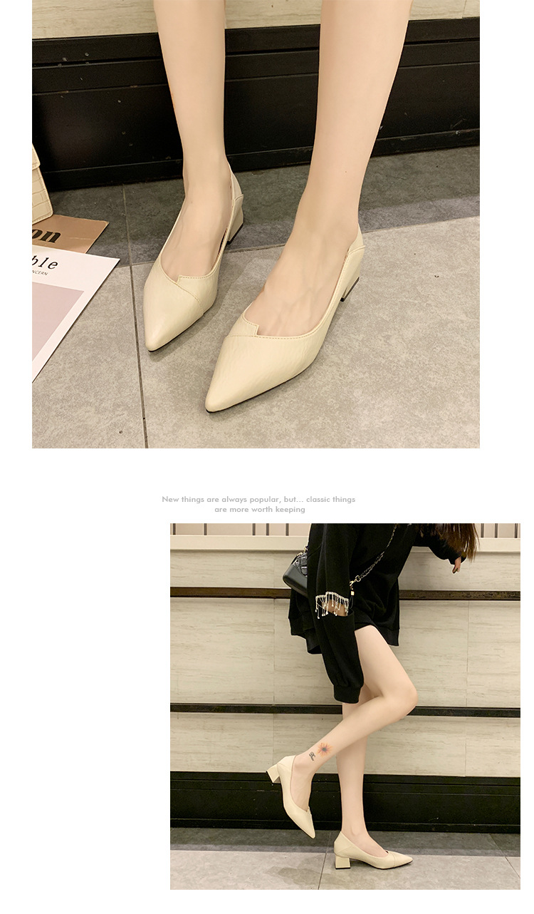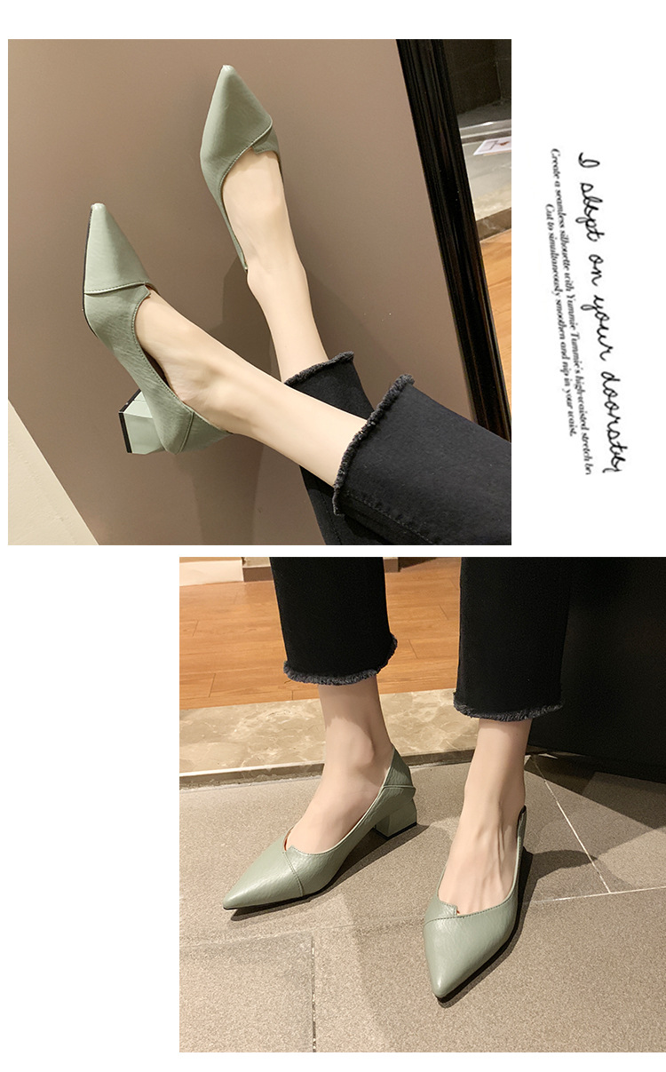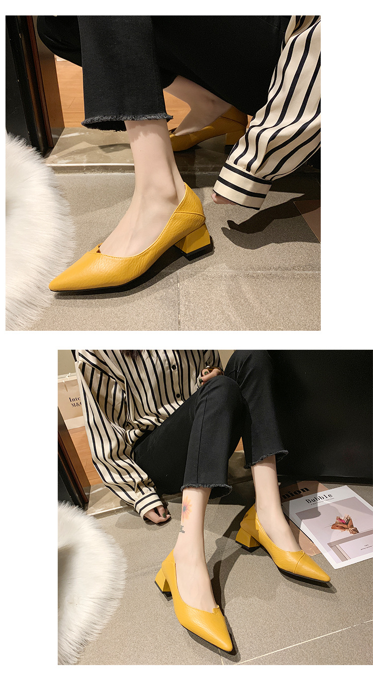 2021 한국 스타일 두꺼운 굽 얕은 입 하이힐 신발 여성의 뾰족한 전문 작업 신발 검은 중엽 가죽 신발스토어 가기