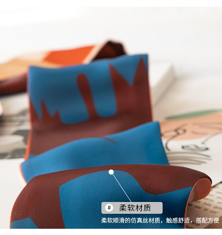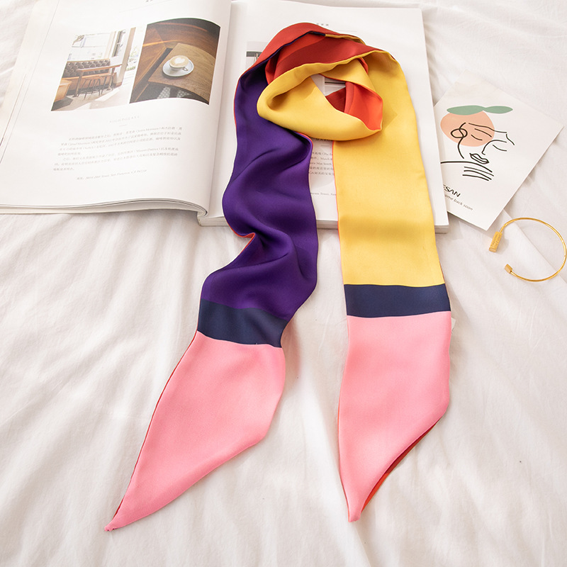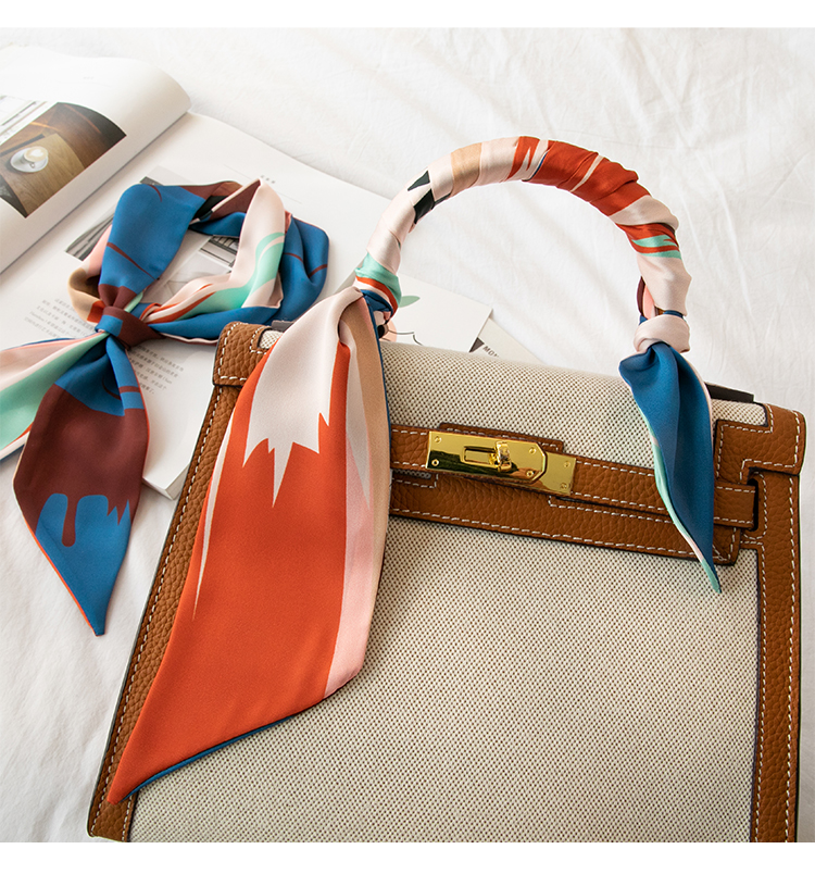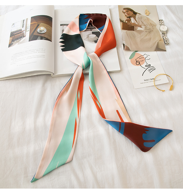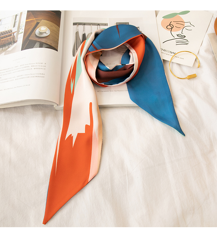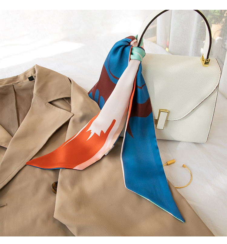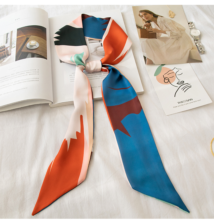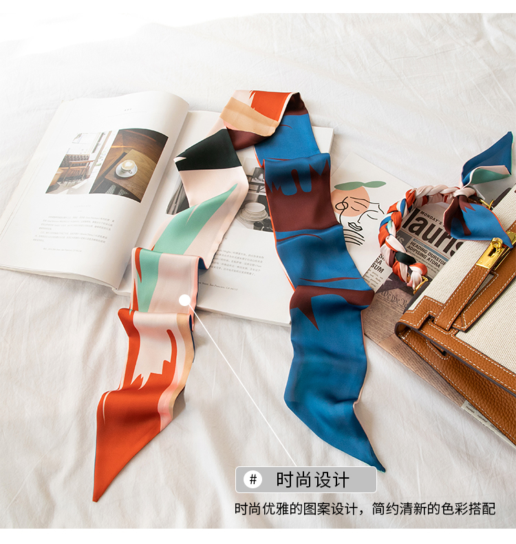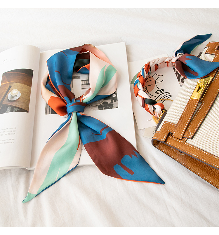 유럽과 미국의 봄과 가을 블루 오렌지 헤어 밴드 여성의 여름 실크 스카프 헤어 밴드 긴 리본 얇은 좁은 여성용 장식 넥타이 스카프