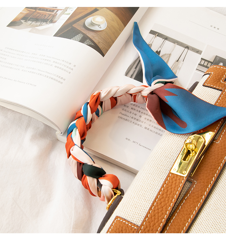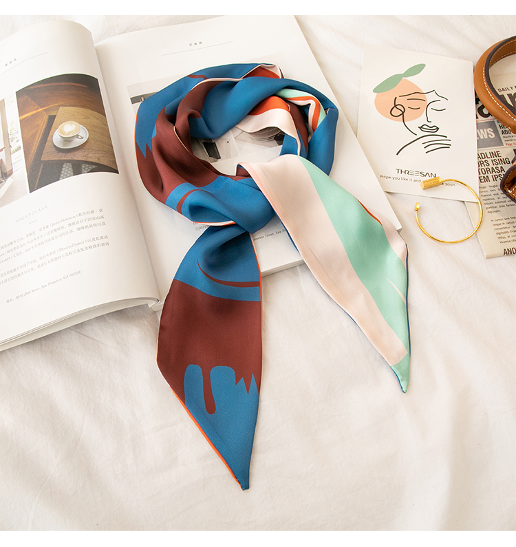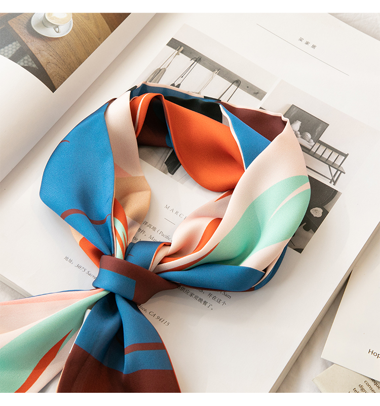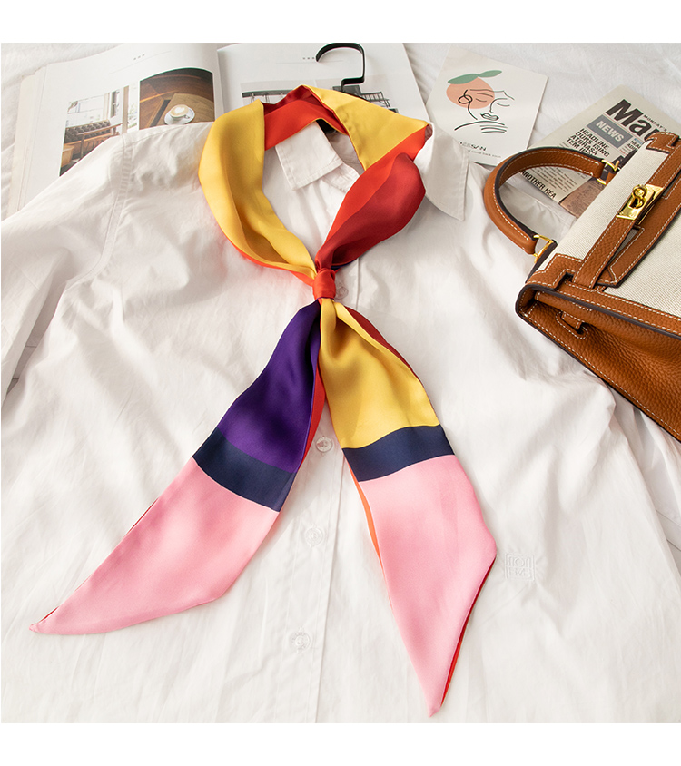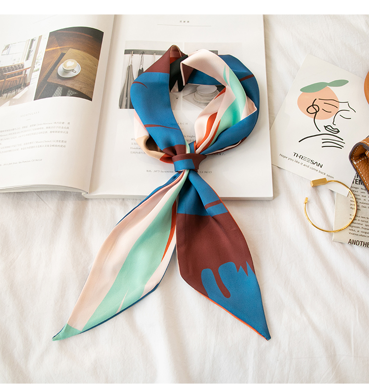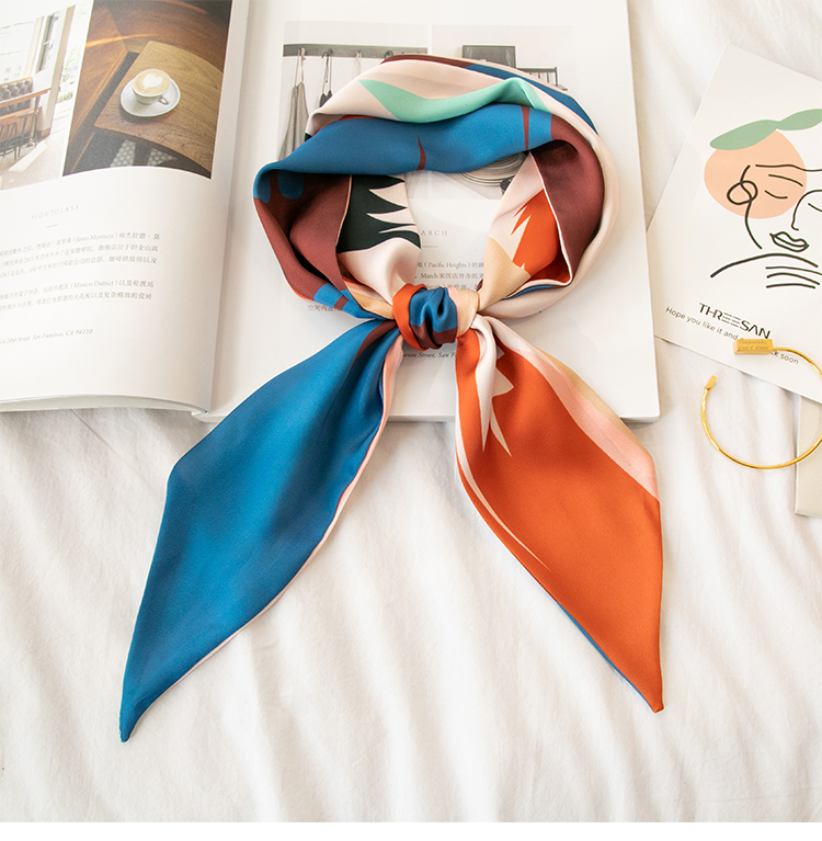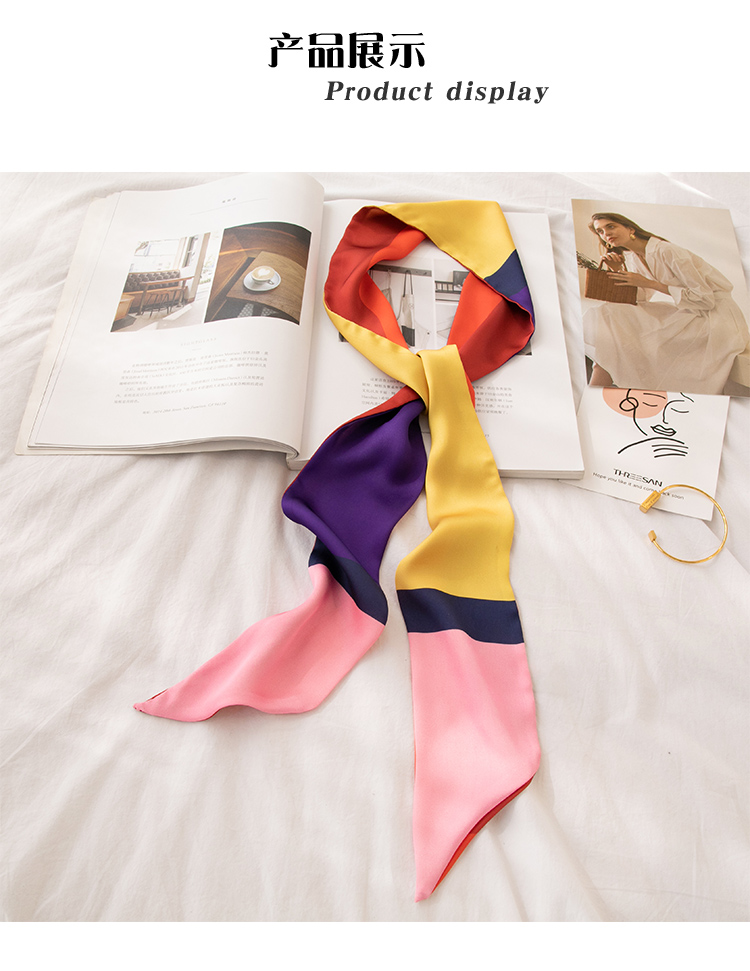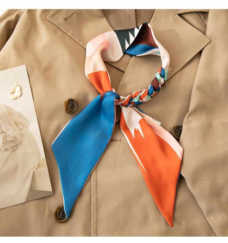 유럽과 미국의 봄과 가을 블루 오렌지 헤어 밴드 여성의 여름 실크 스카프 헤어 밴드 긴 리본 얇은 좁은 여성용 장식 넥타이 스카프