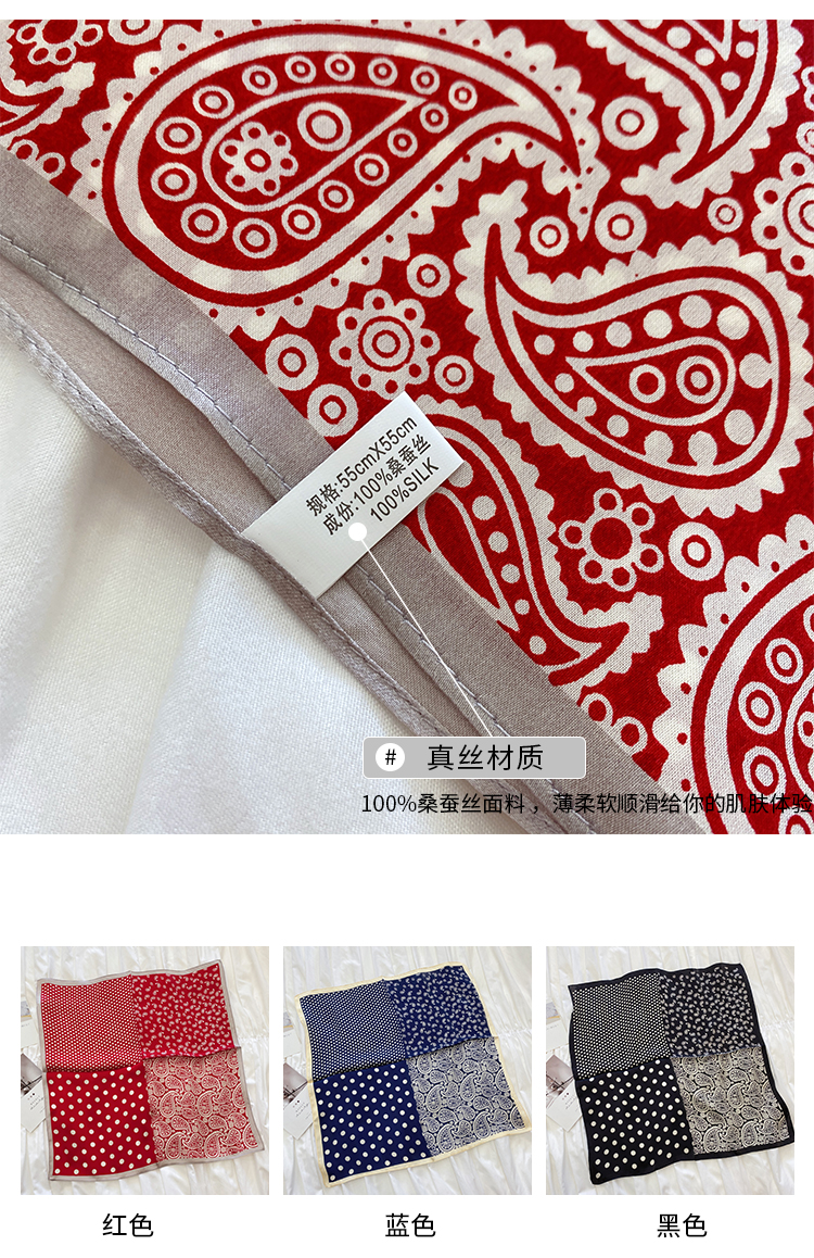 올 매치 폴카 도트 캐슈 실크 작은 스퀘어 실크 뽕나무 실크 빈티지 패션 스카프 셔츠 여성용 세트스토어 가기