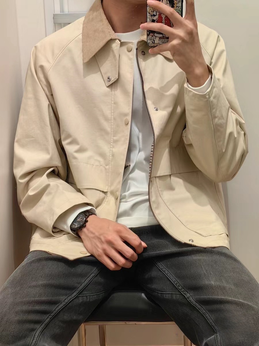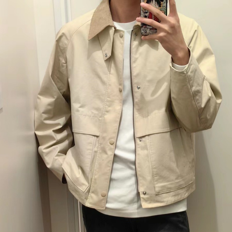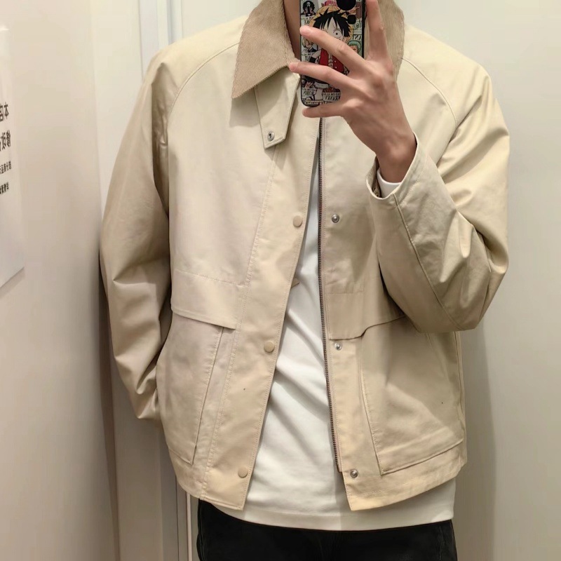 소! 499 봄 남자 캐주얼 짧은 재킷 영국 스타일 Raglan 소매 느슨한 재킷 코트 470989스토어 가기